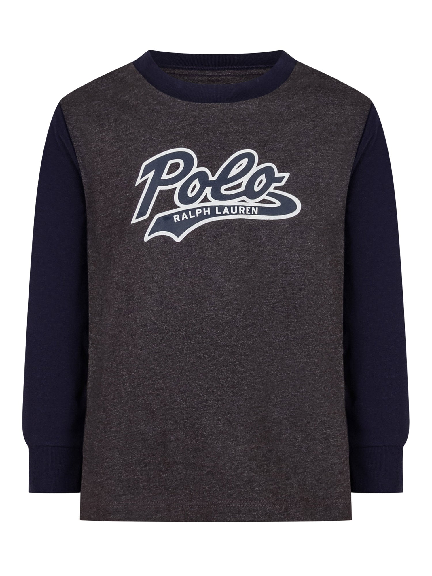 Maglia bambino a maniche lunghe Polo Ralph Lauren in cotone, con stampa frontale logo vintage.