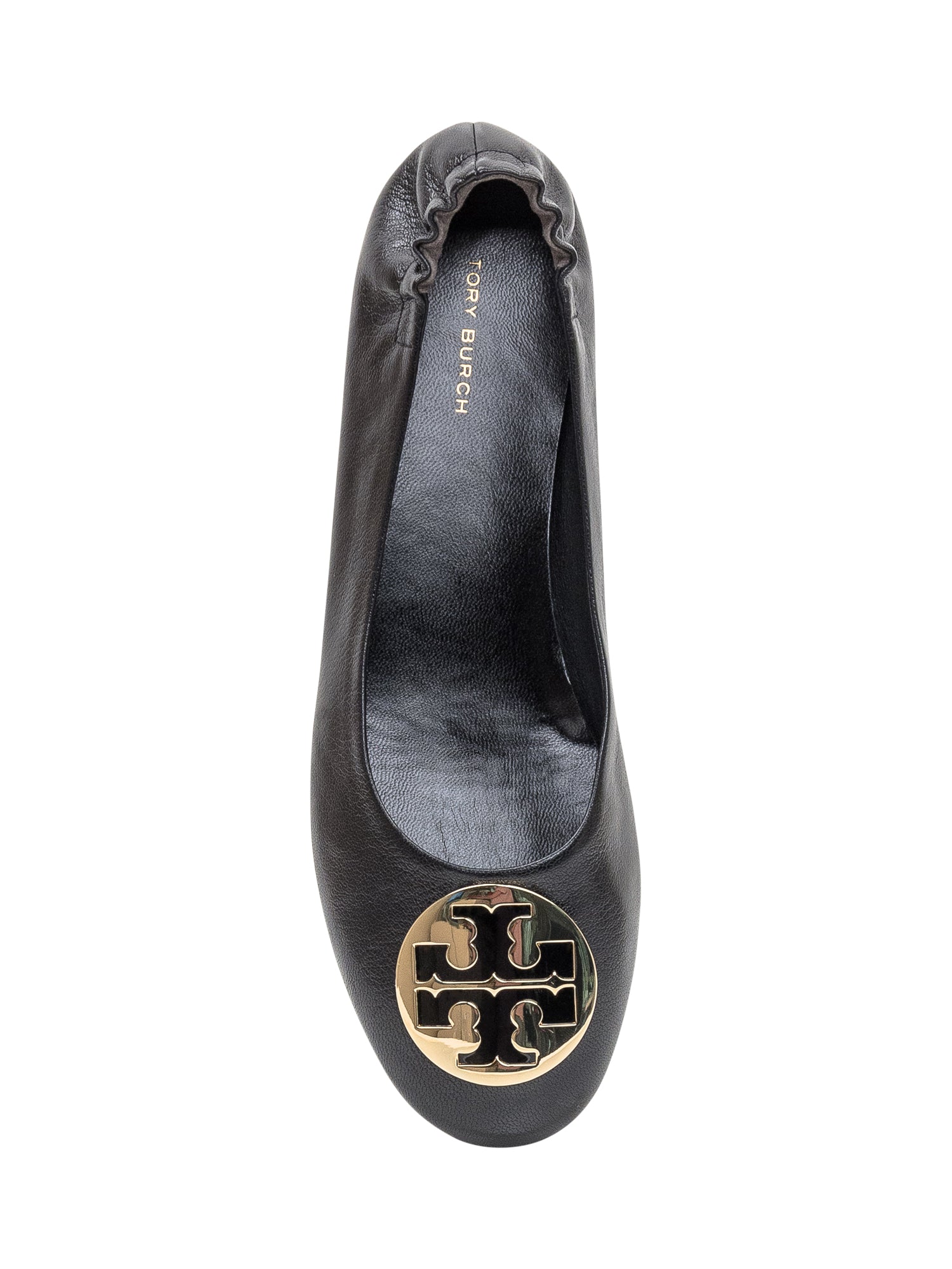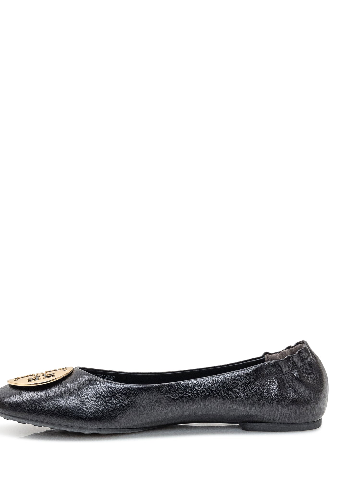 Ballerina realizzata in pelle. Parte posteriore elasticizzata . Punta arrotondata. Placca logata in oro.