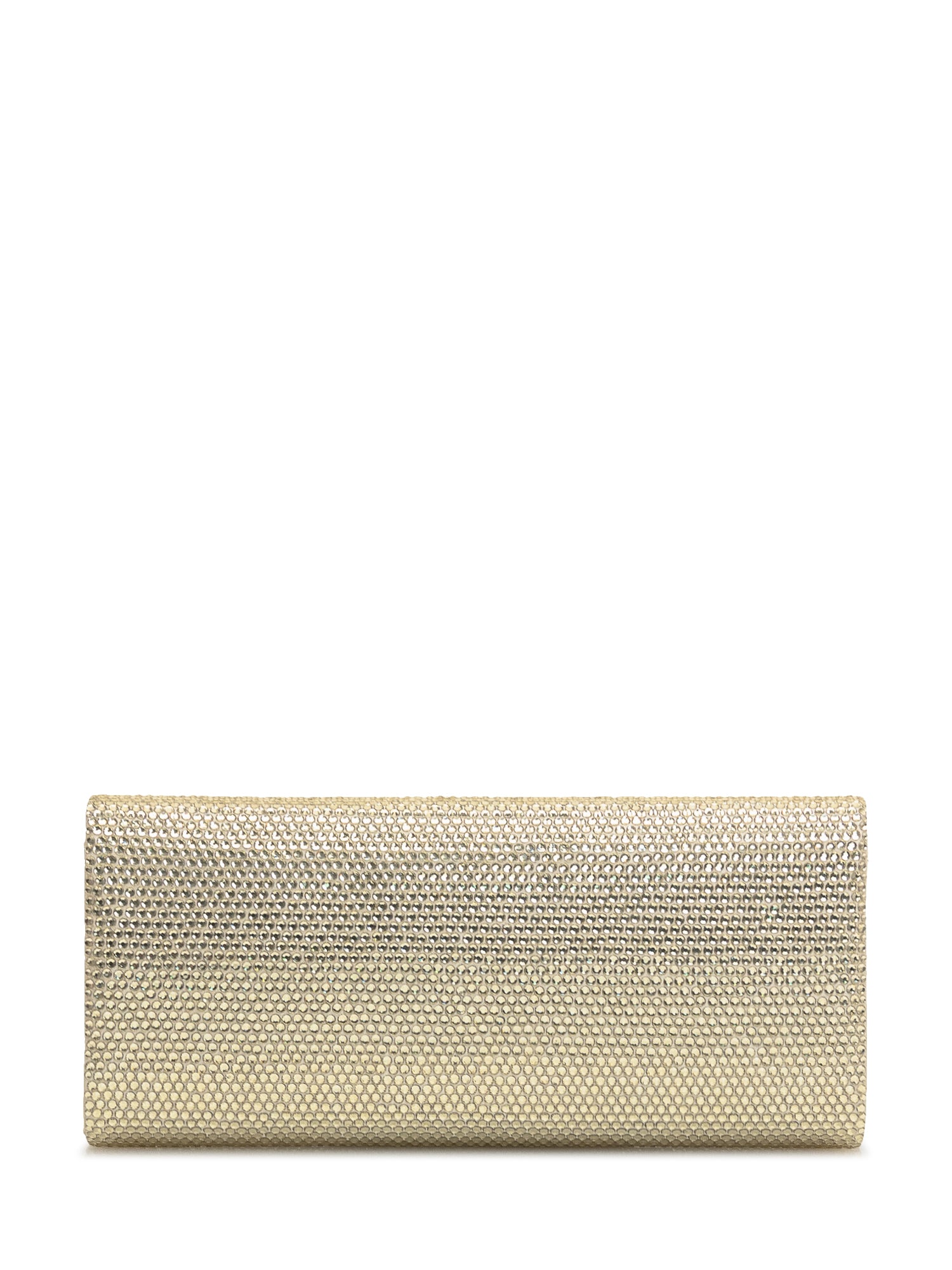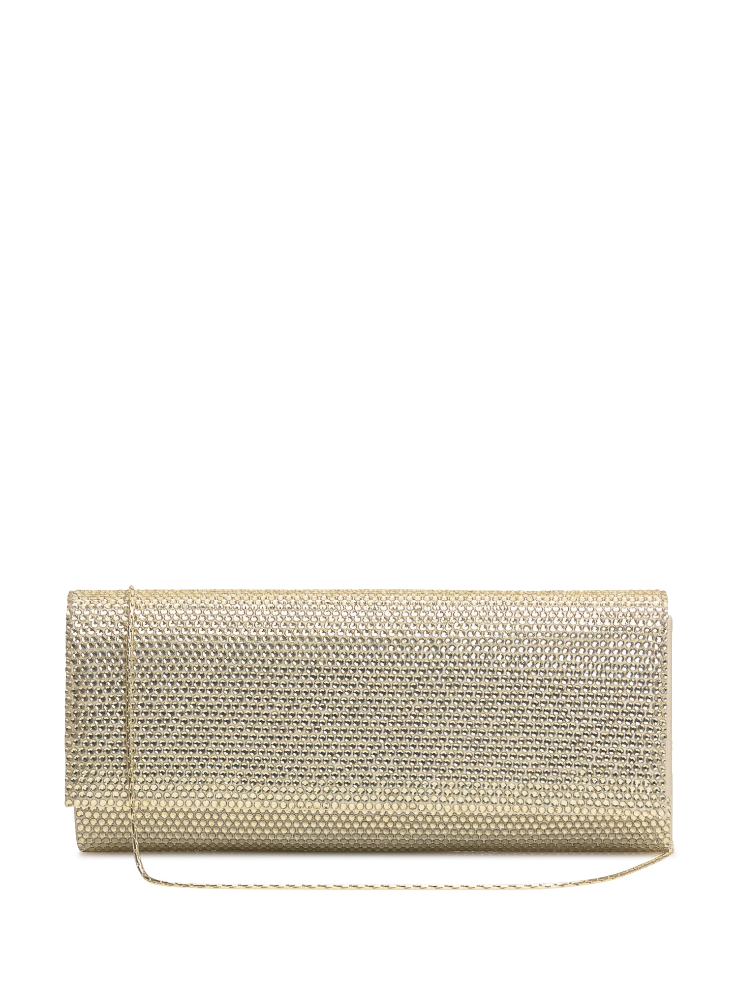 Clutch oro. Brillantinato all over. Tracolla sottile removibile. Chiusura a calamita.