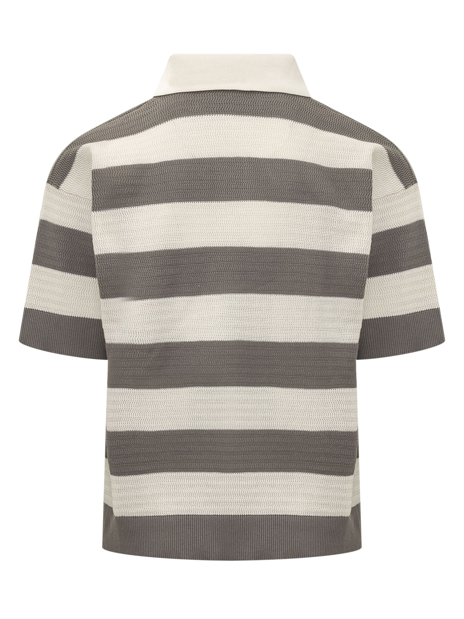 Polo a maniche corte con colletto e bottoni, motivo a righe e patch logo sul petto, vestibilità regolare