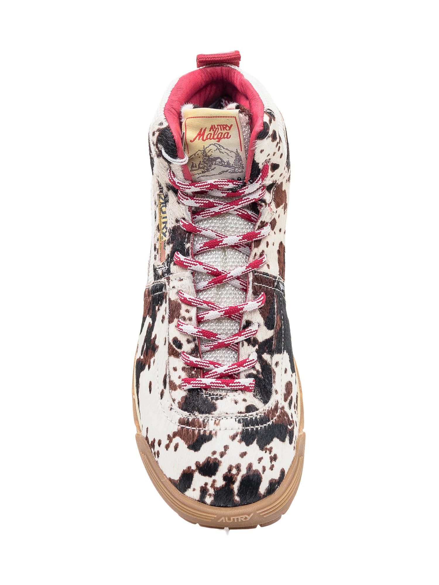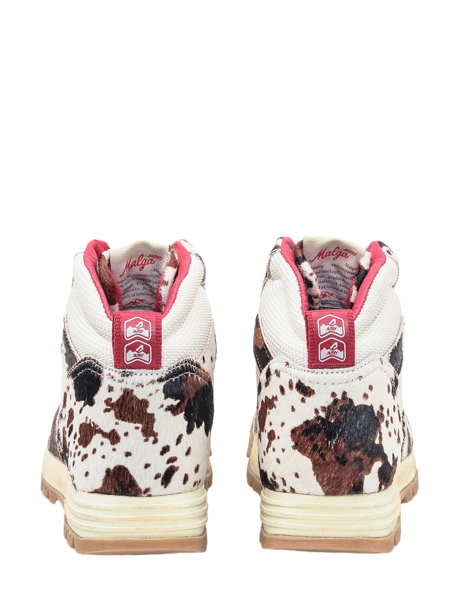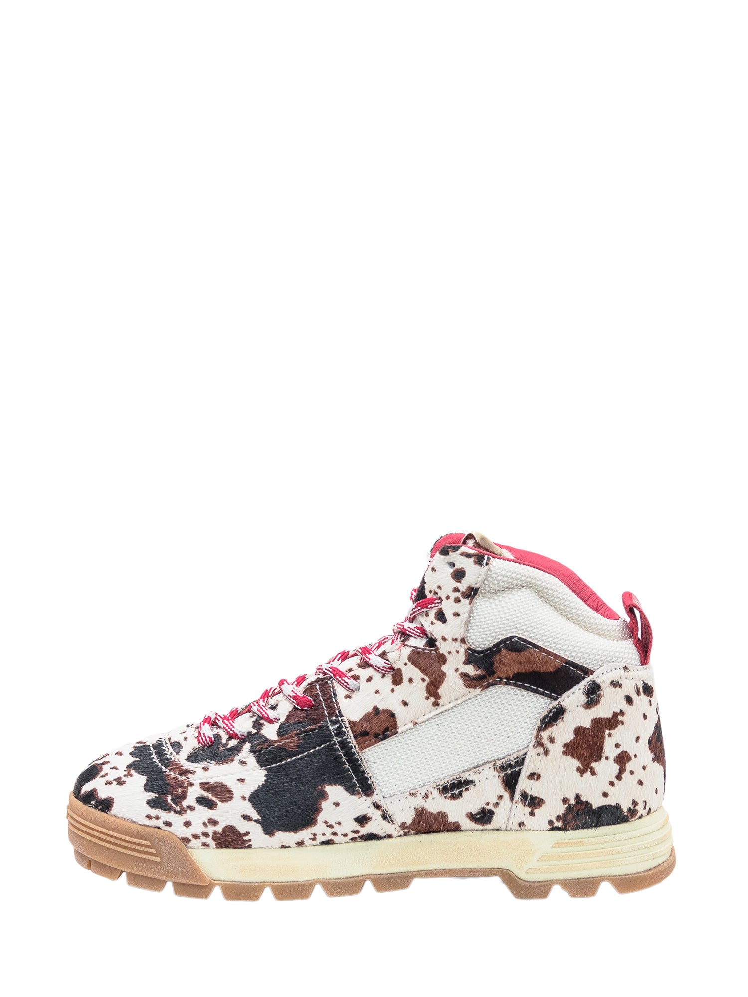Scarponcino mid con tomaia a motivo maculato effetto pelo e inserti in mesh traspirante. Collare imbottito e lacci a contrasto. Suola carrarmato per stabilità e grip.