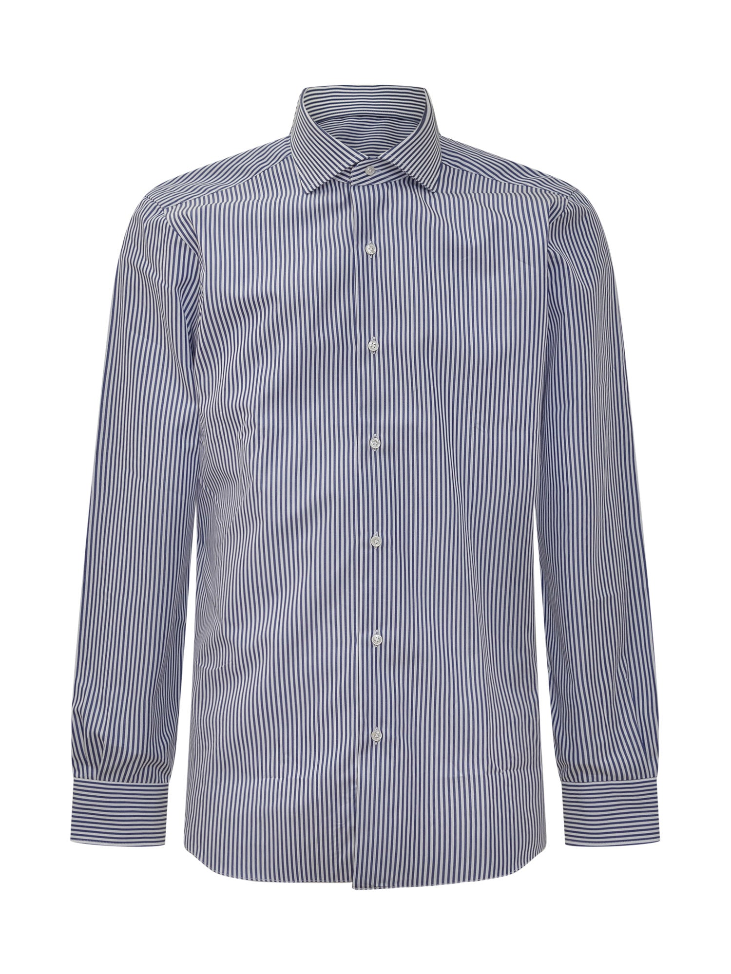 Camicia Barba in cotone con elegante fantasia a righe blu e bianche. Linea classica e bottoni in madreperla.