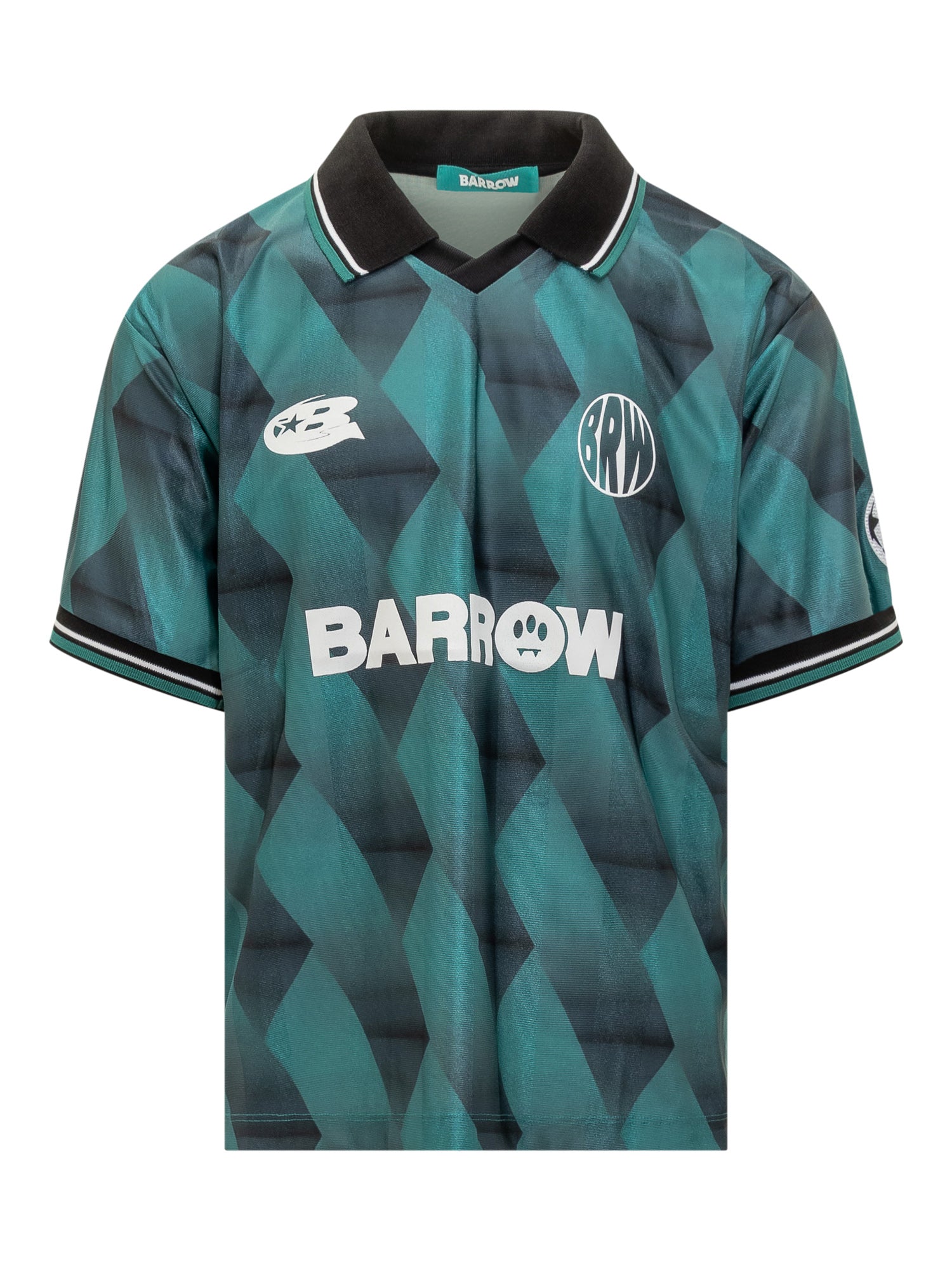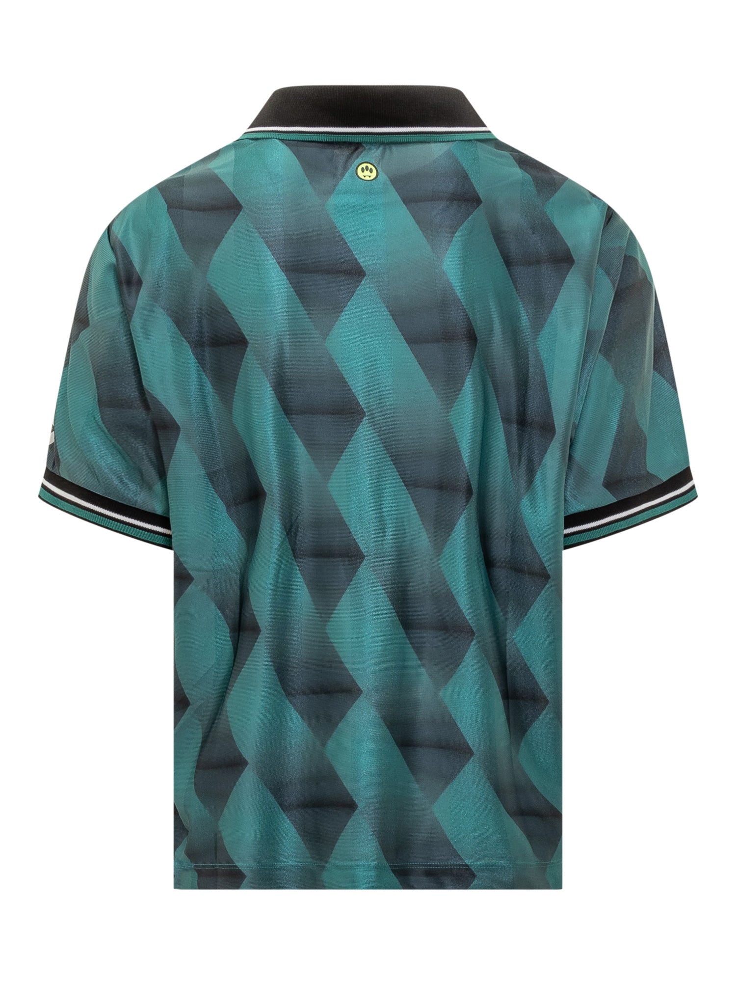 Maglia Barrow stile jersey sportiva in verde con motivo geometrico e logo a contrasto. Colletto classico e dettagli grafici distintivi.