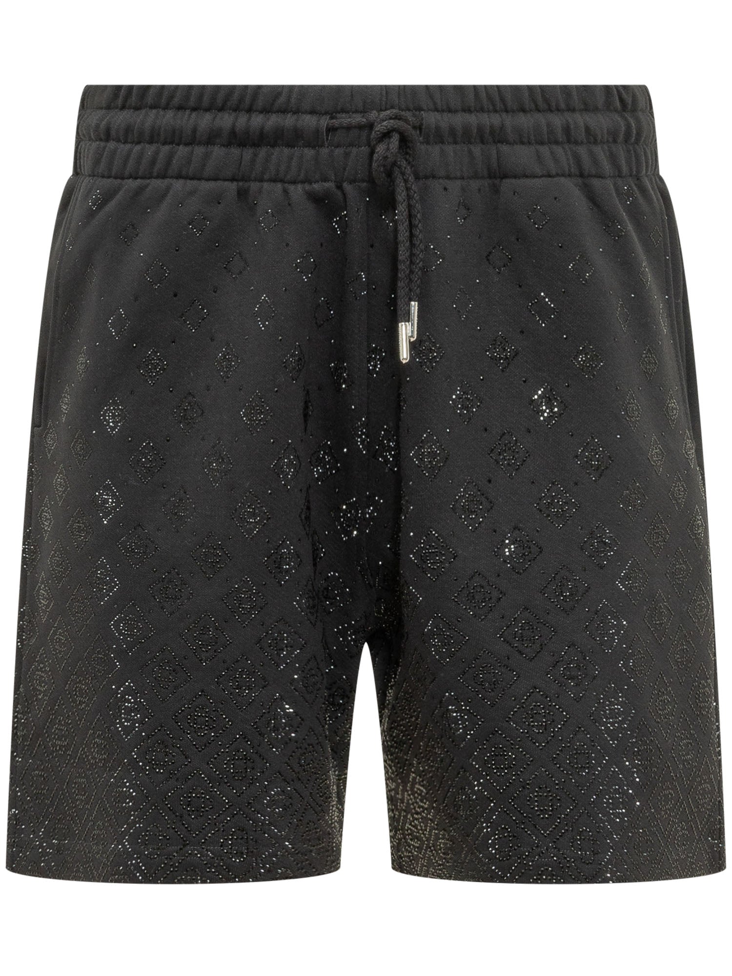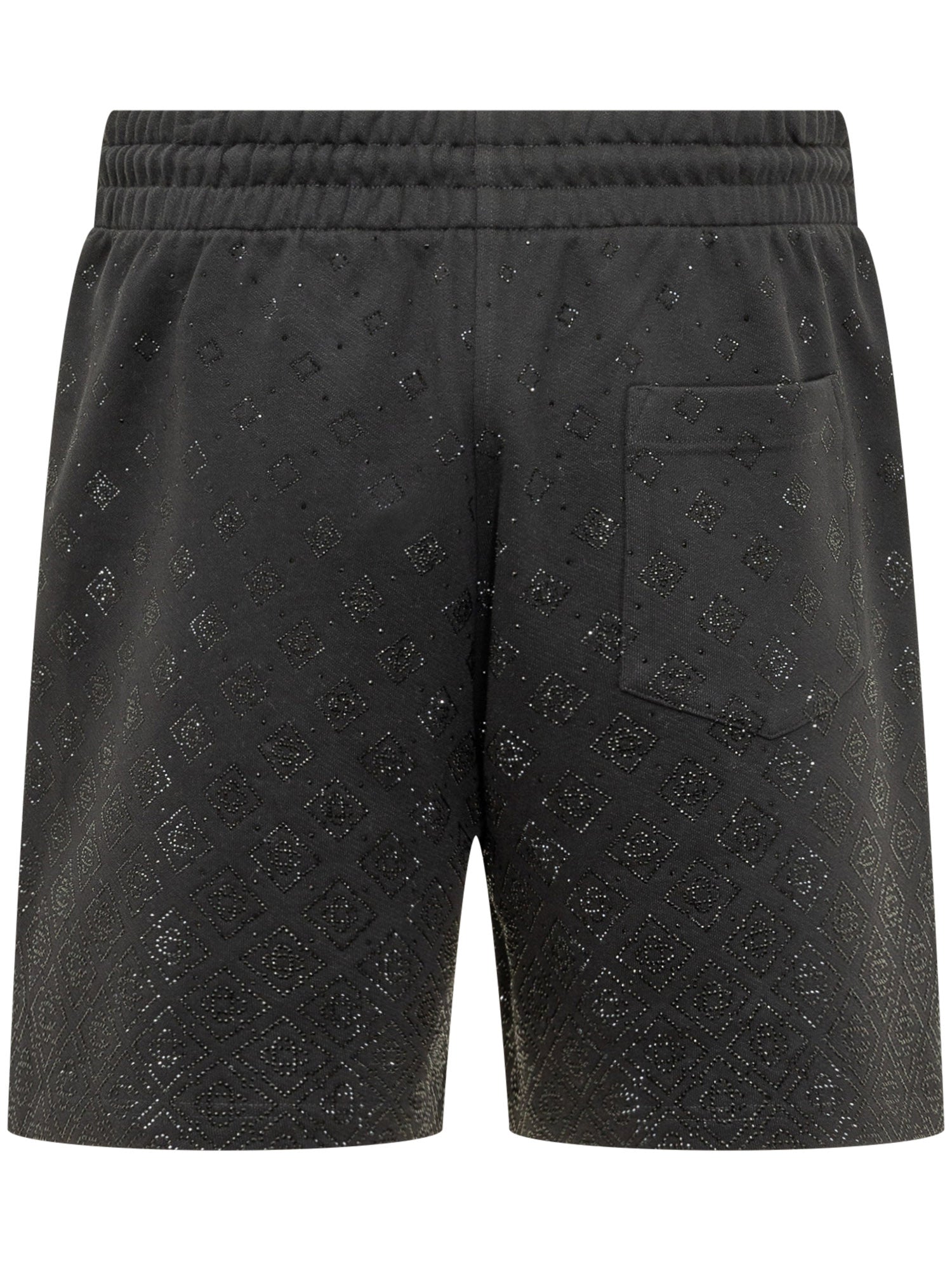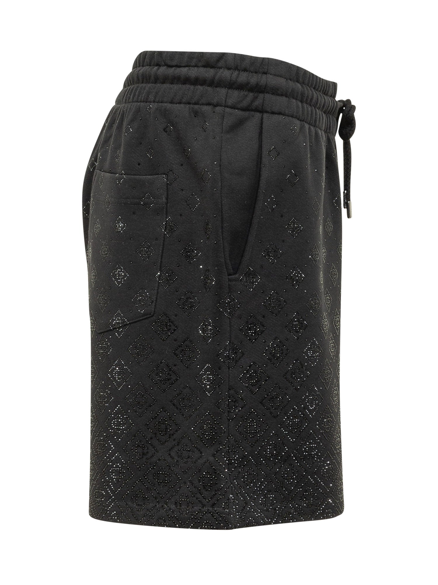 Shorts in felpa con vita elasticizzata e coulisse regolabile. Decorazione all over con micro cristalli che creano un motivo geometrico luminoso. Vestibilità confortevole.