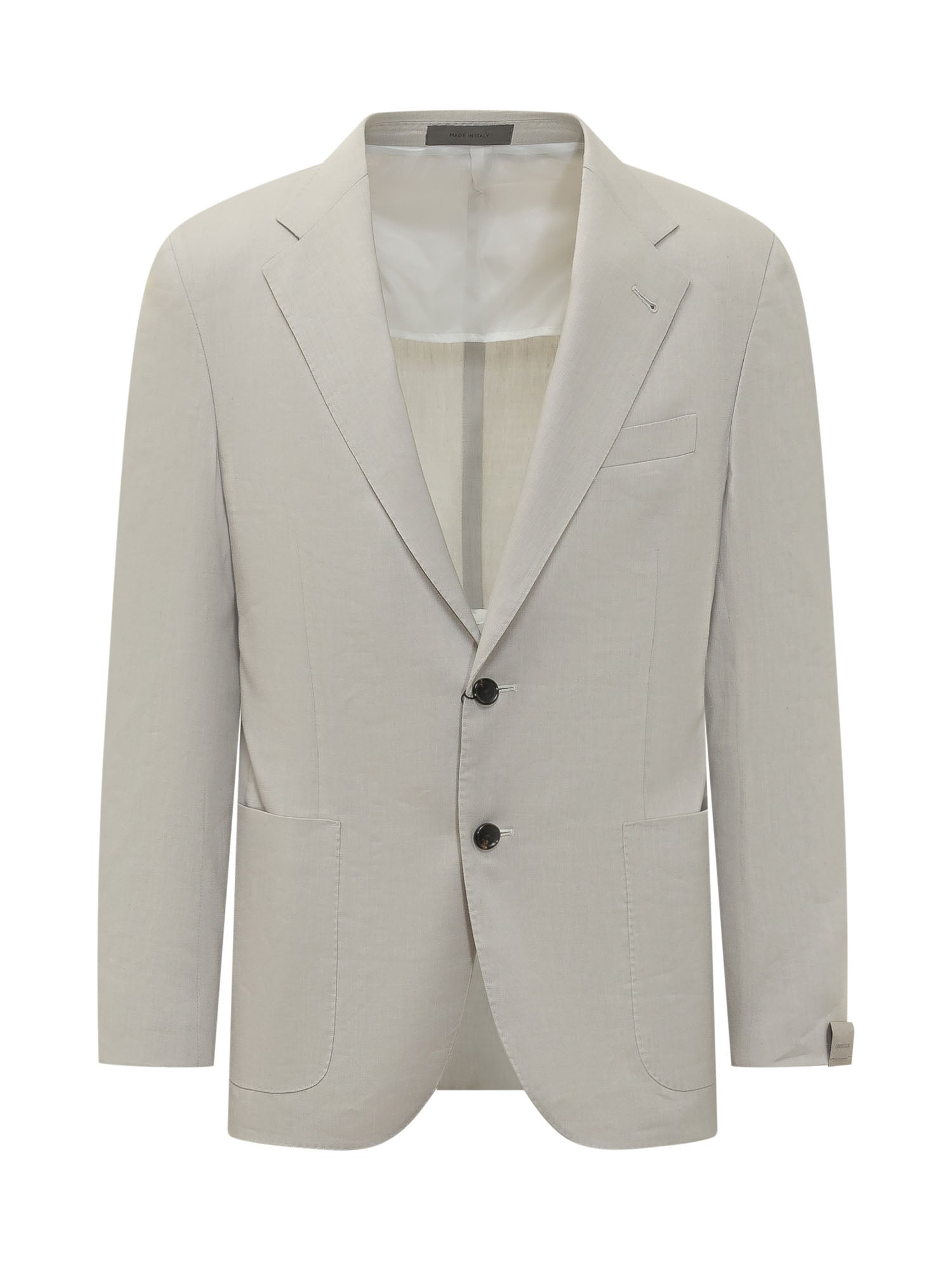 Giacca con chiusura frontale a due bottoni, tasche applicate frontali e taschino sul petto