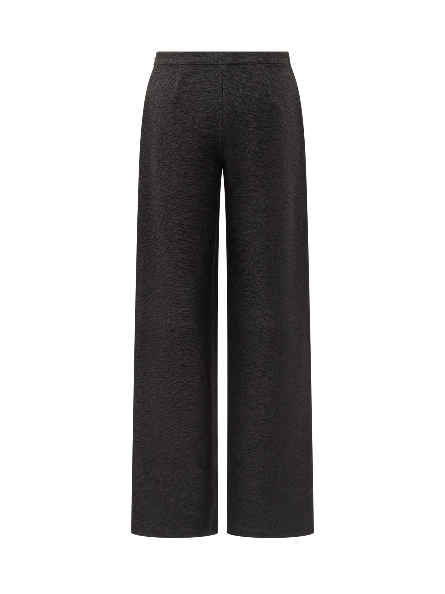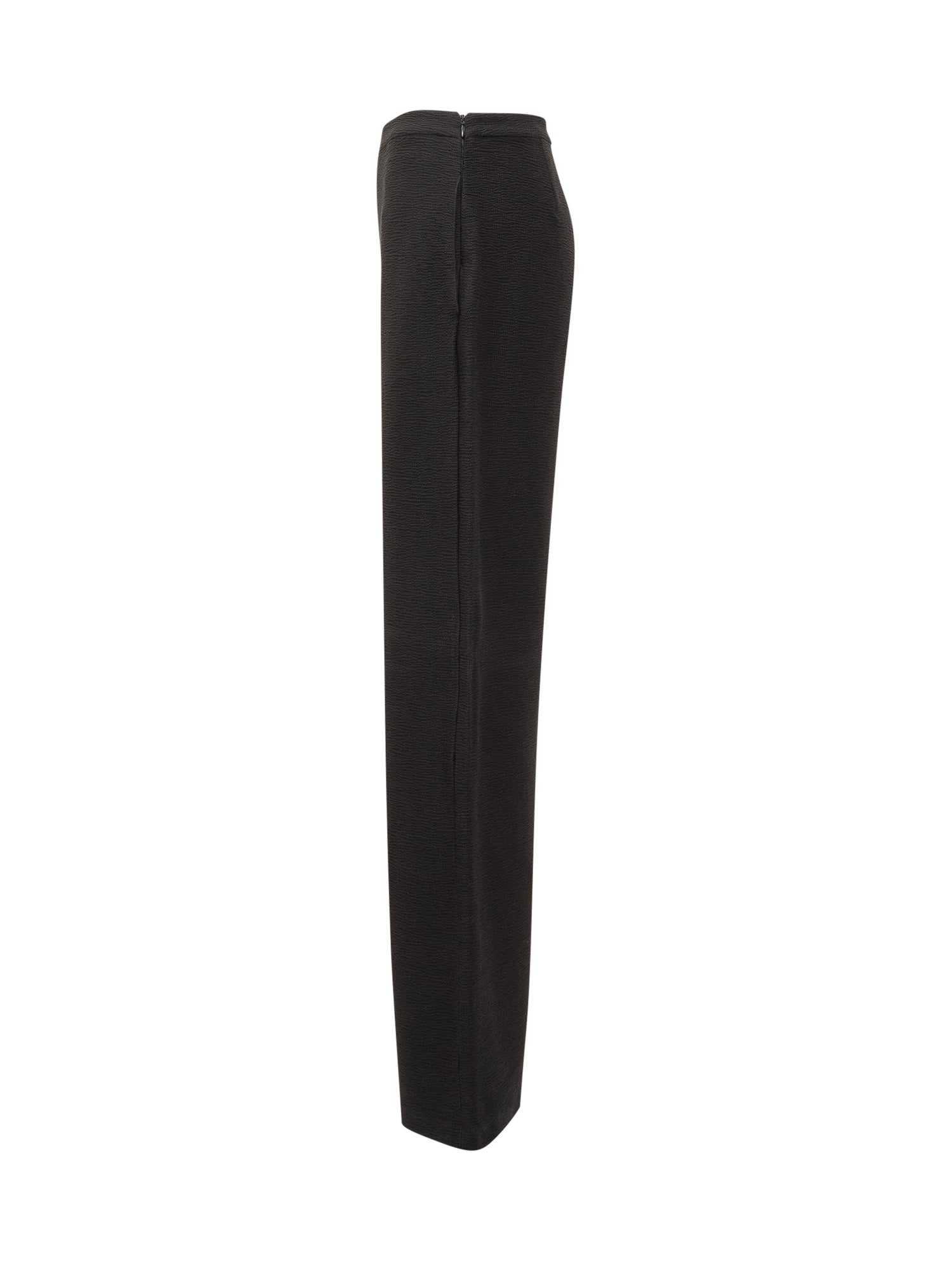 Pantaloni neri a gamba larga Exterior, realizzati in tessuto leggero con texture raffinata.