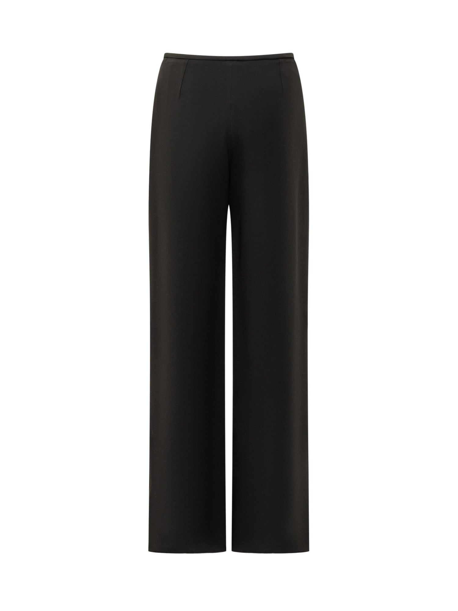 Pantalone a palazzo. Chiusura con zip invisibile sul lato.