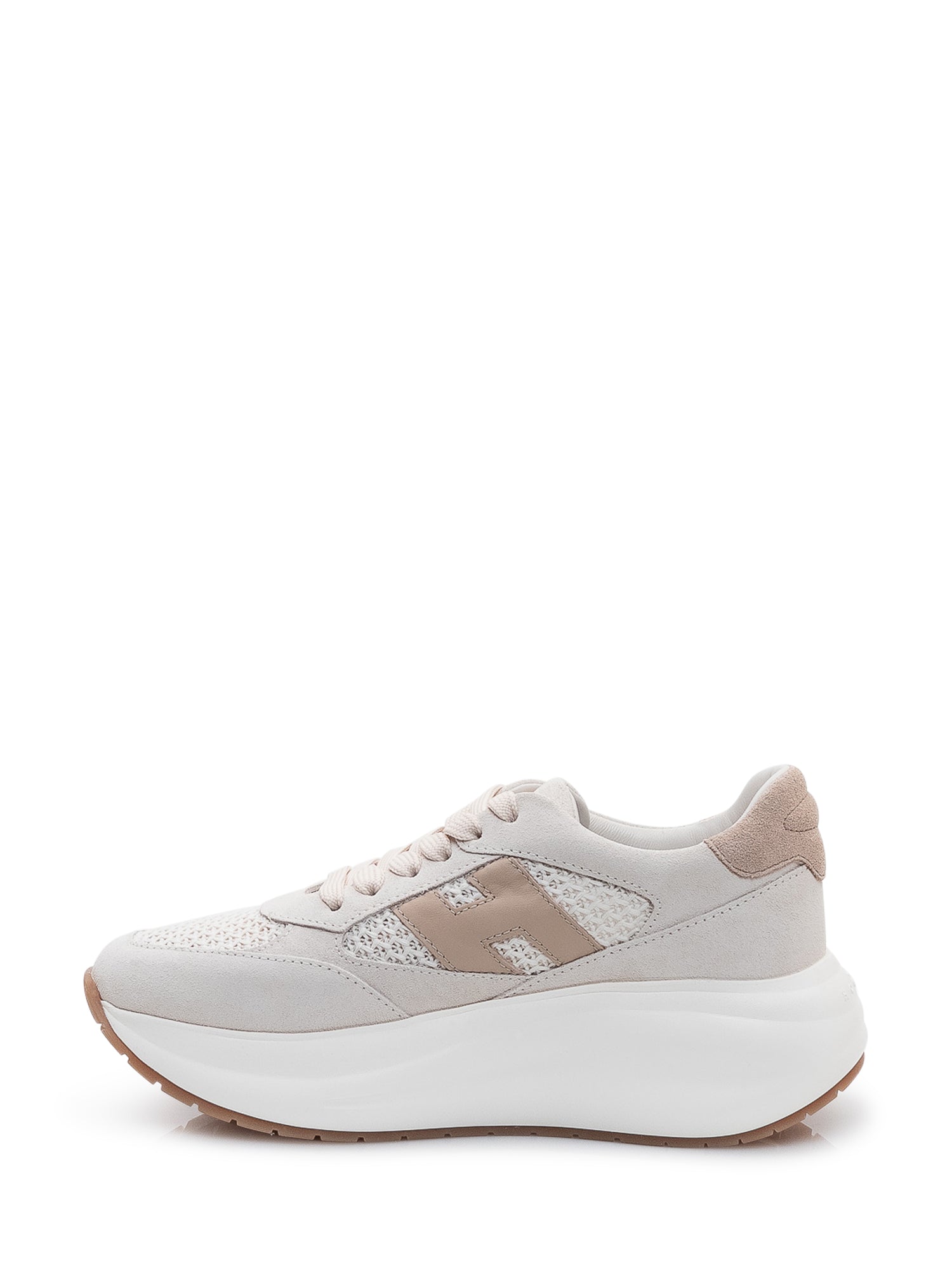 Sneaker con inserti a rete, logo laterale applicato e chiusura con lacci. Suola spessa con linea sportiva.