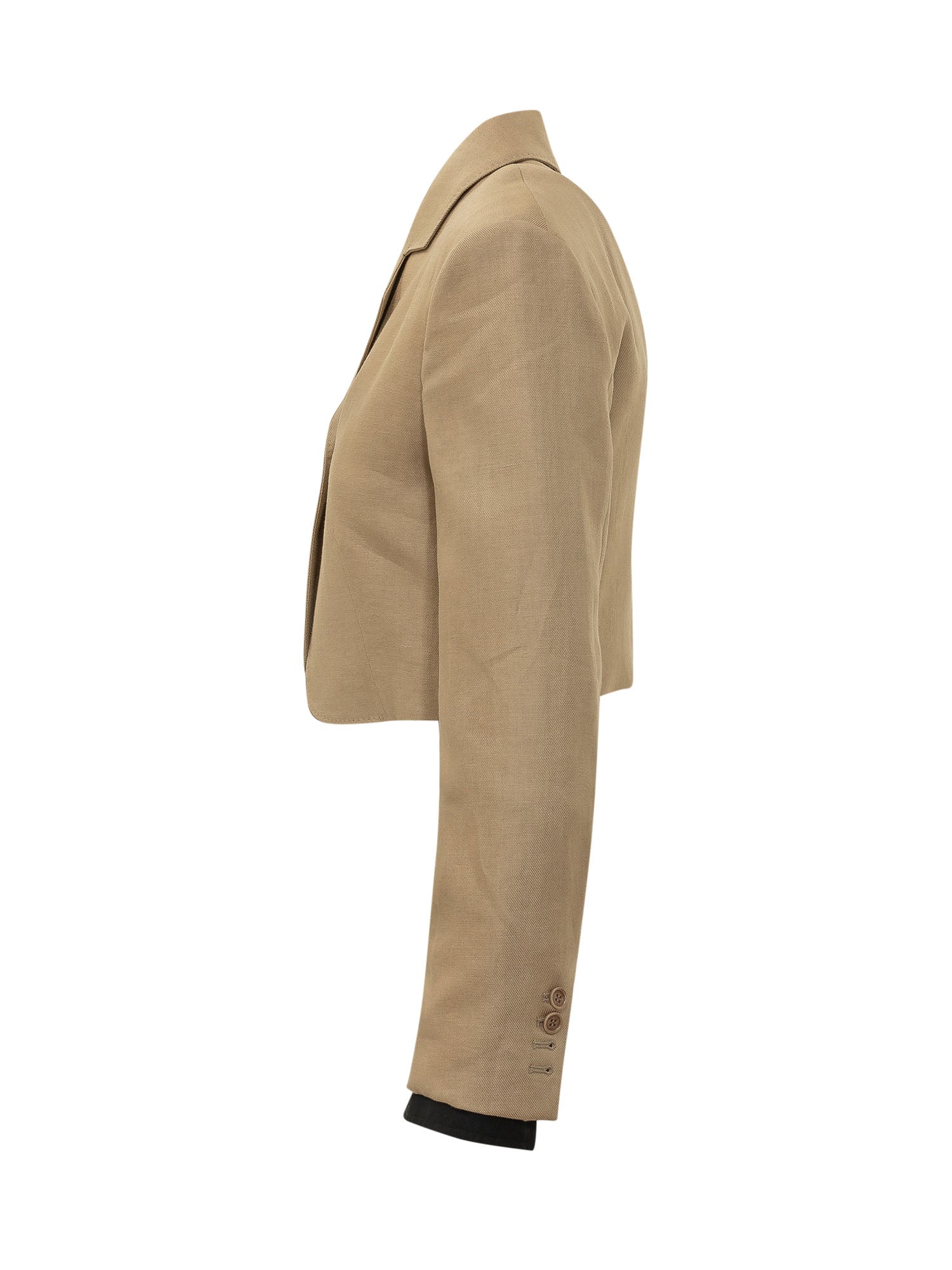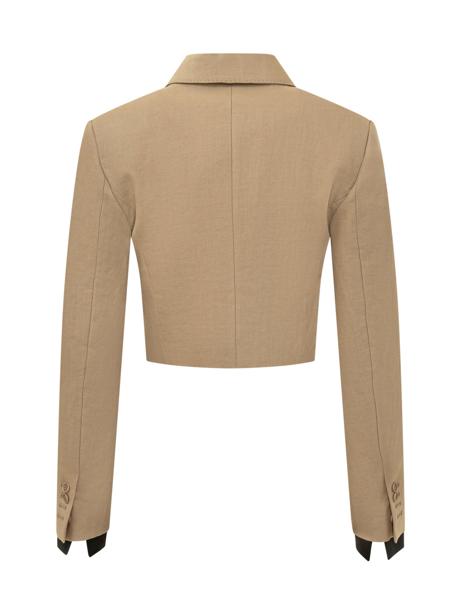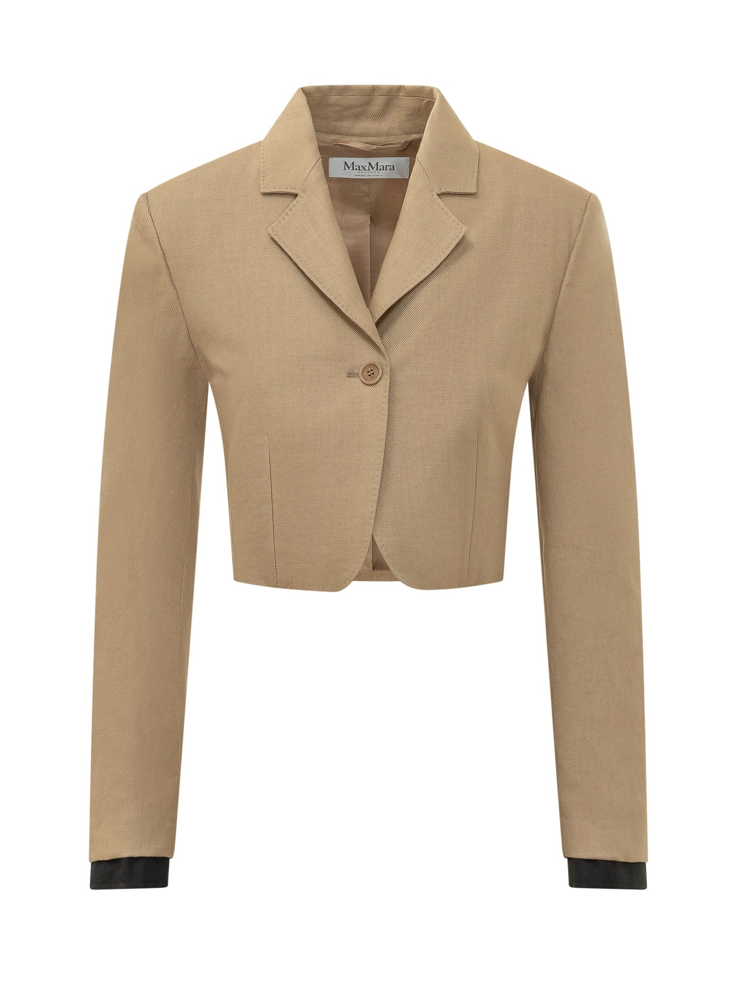 Giacca cropped con rever classico, chiusura con bottone e maniche lunghe, caratterizzata da linea aderente e struttura definita