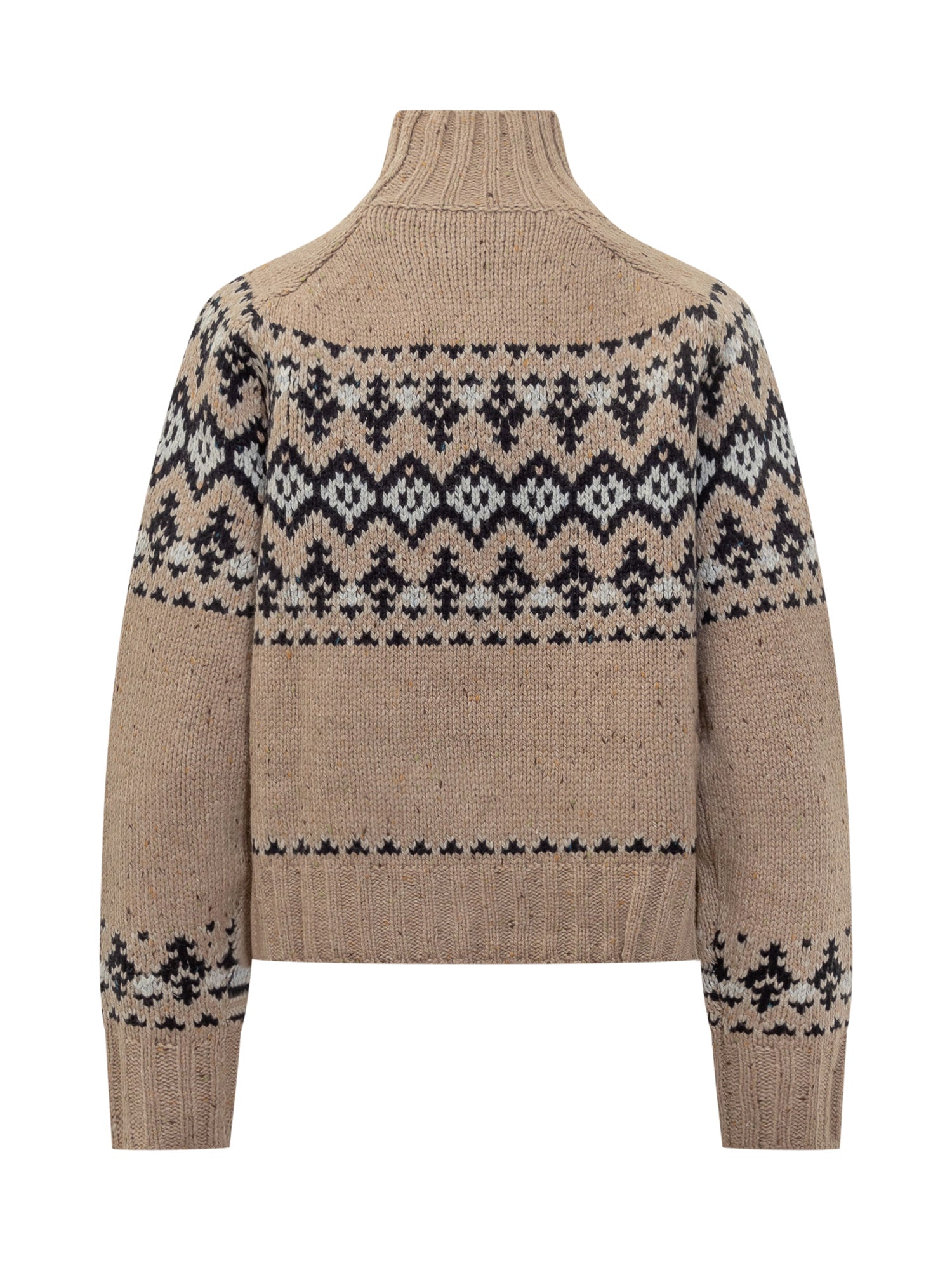 Maglione MC2 Saint Barth modello Myra Donegal in lana con motivo jacquard nei toni del beige e blu. Collo alto a coste e taglio confortevole per un look caldo e sofisticato.