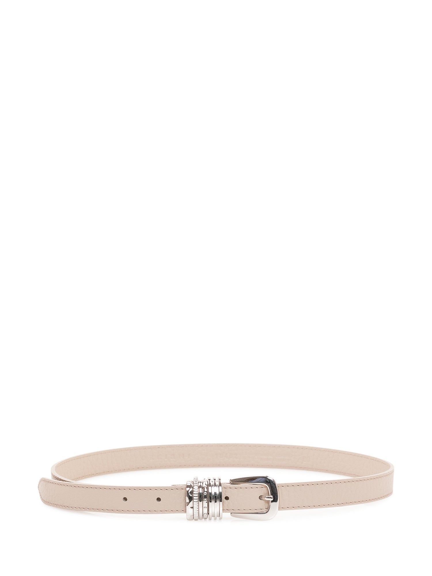 Cintura con fibbia metallica, passante decorativo multiplo, chiusura regolabile con fori e design lineare