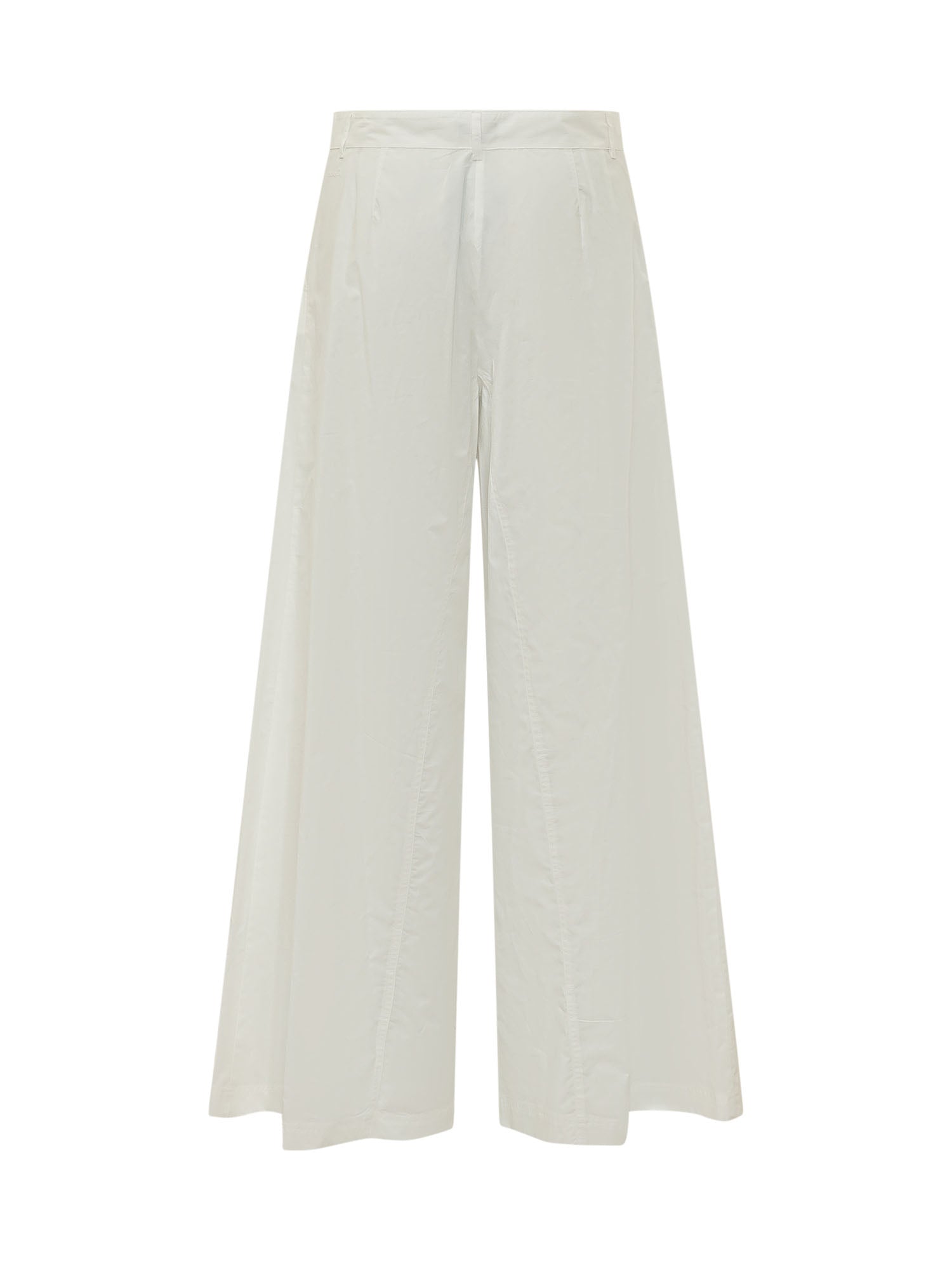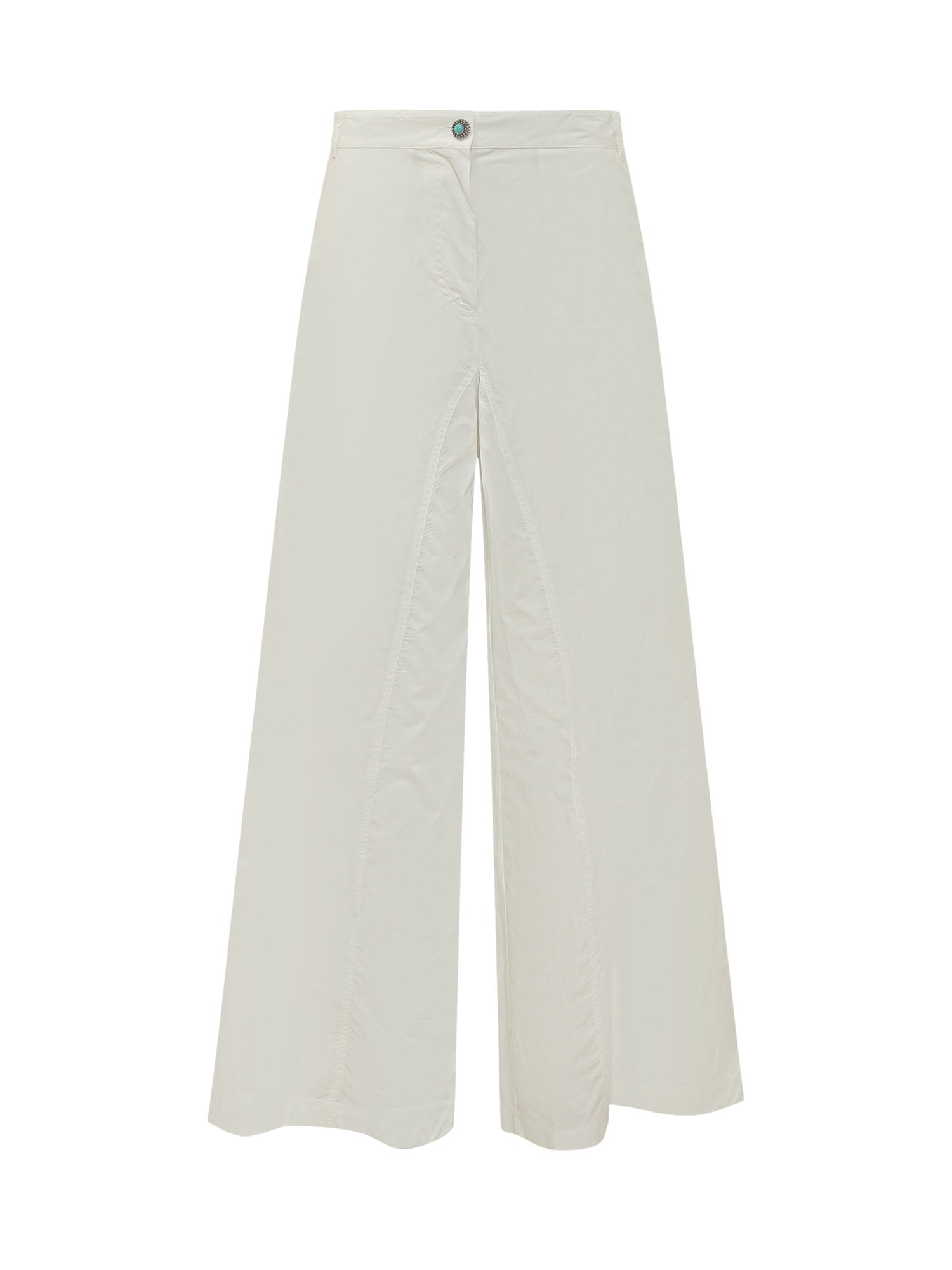 Pantaloni con chiusura frontale e gamba ampia fluida.