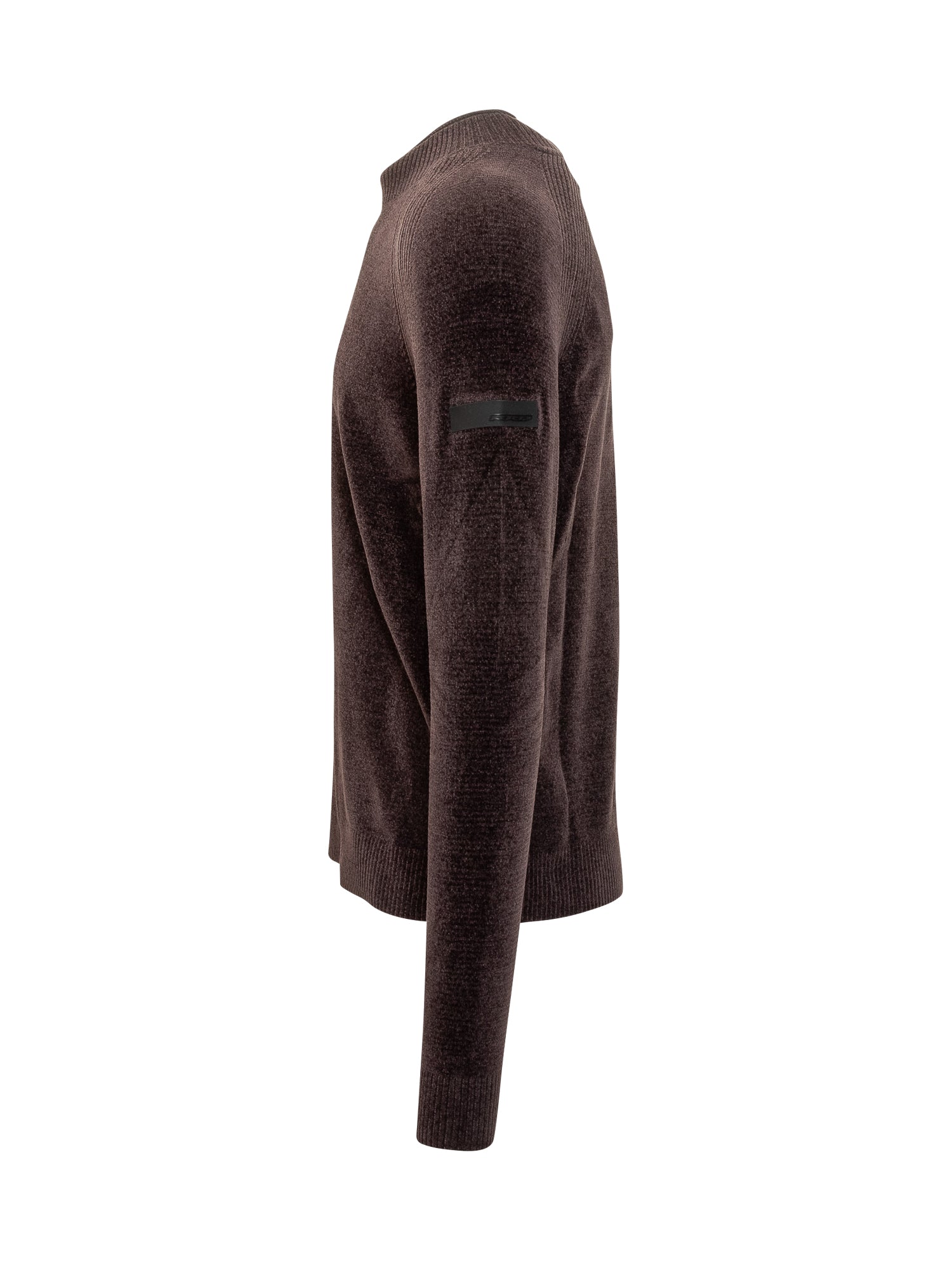Maglione RRD in lana con finitura morbida effetto velluto. Collo, spalle e polsi a costine.