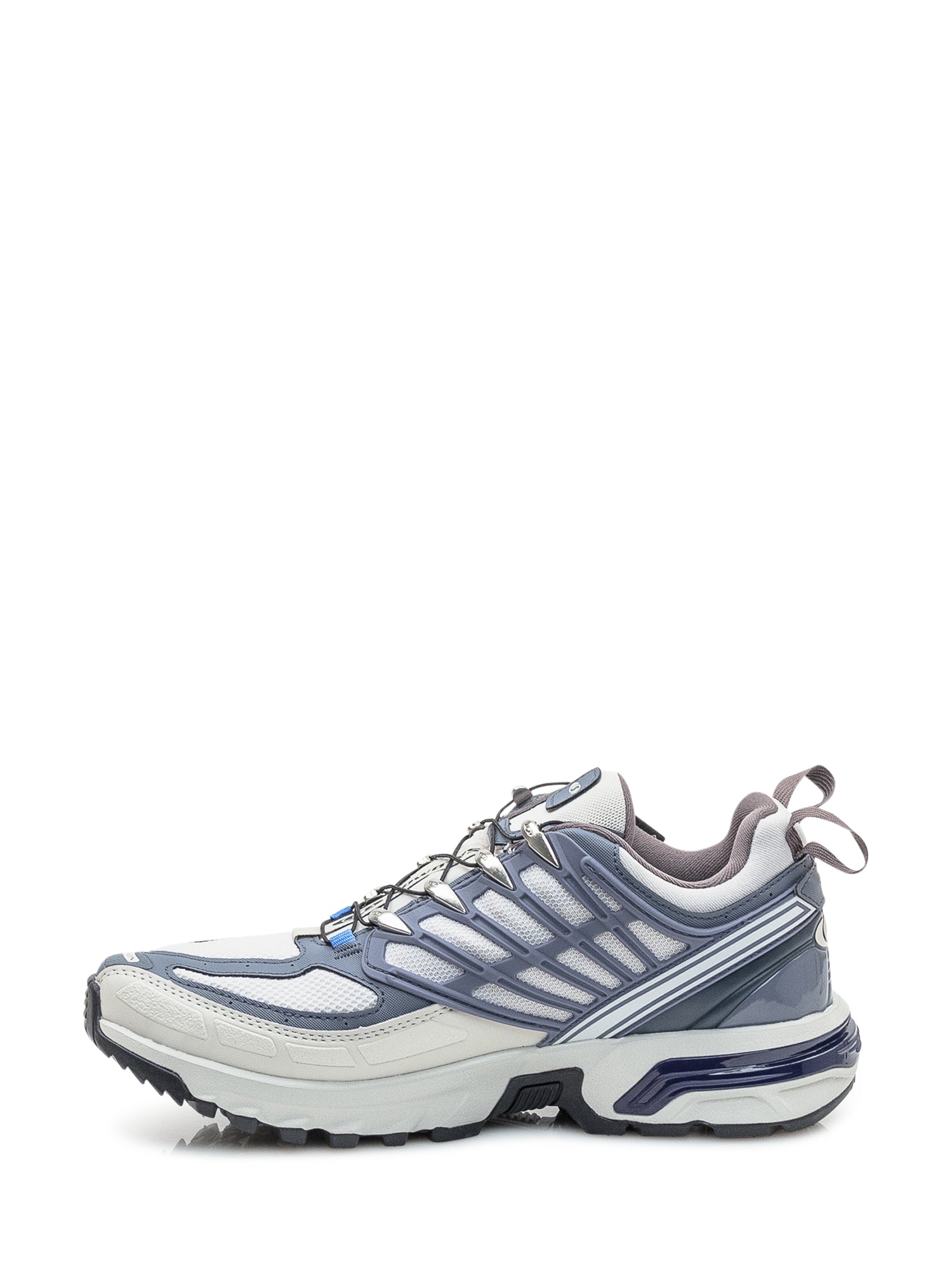 Sneakers Salomon ACS Pro GTX in mesh tecnico azzurro e bianco con dettagli riflettenti. Realizzate con membrana Gore-Tex impermeabile e suola Contagrip per massima aderenza.