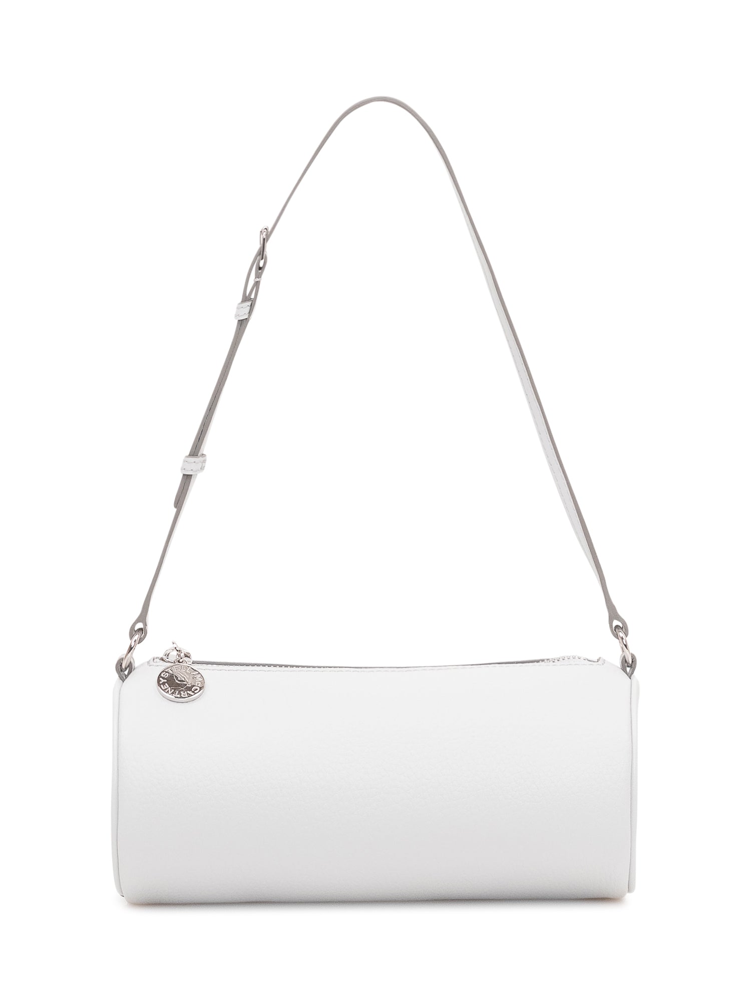 Borsa a spalla con forma allungata, tracolla sottile regolabile e chiusura con zip, dettaglio pendente
