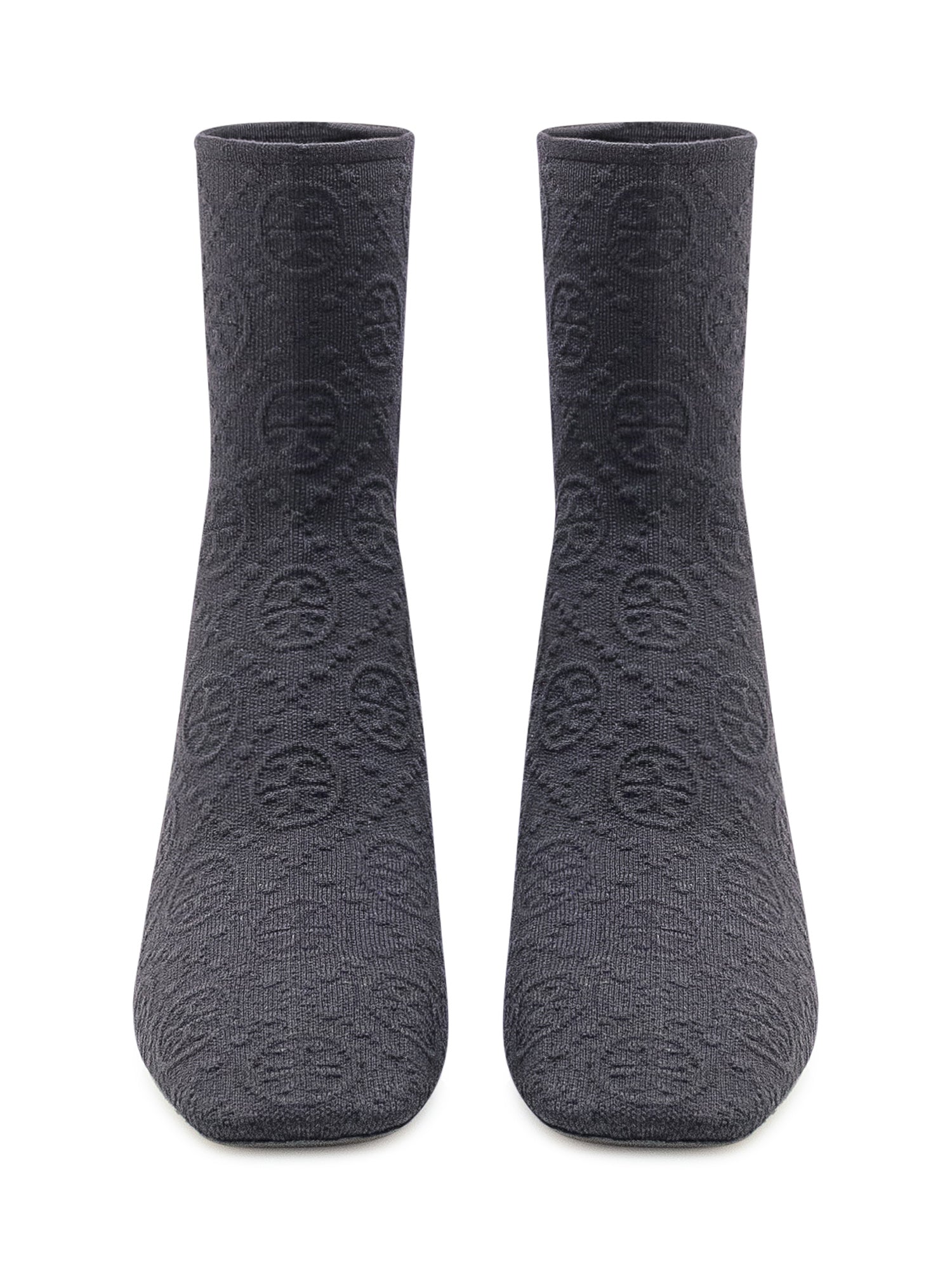Stivaletti Tory Burch neri in tessuto elasticizzato con motivo logo in rilievo.