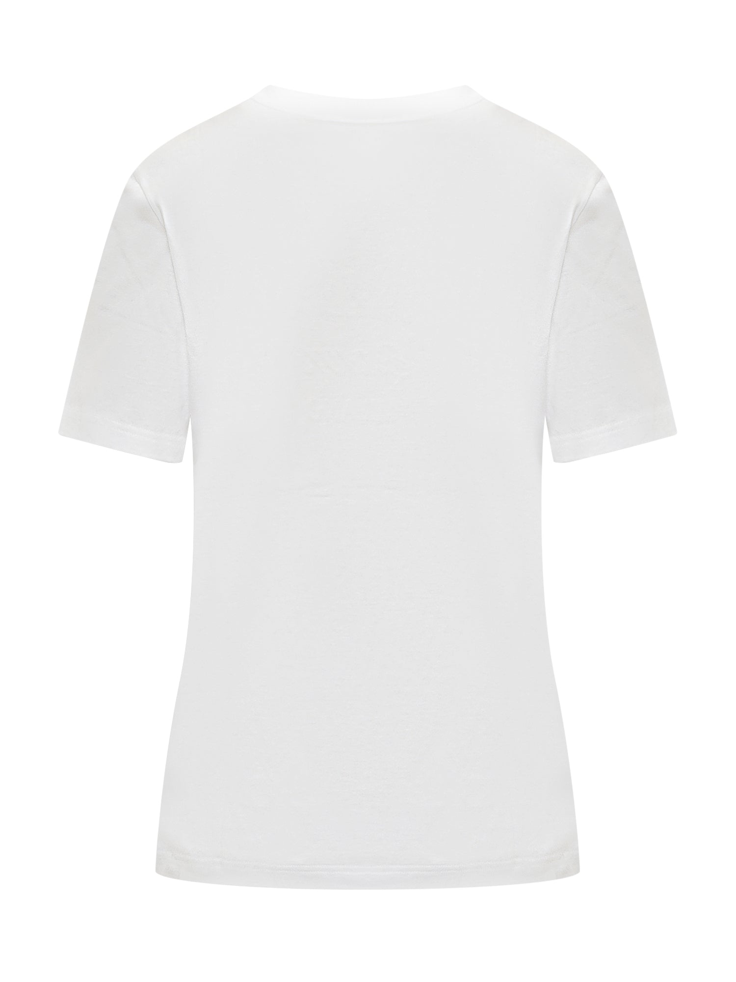 T-shirt bianca in cotone. Girocollo. Logo Versace ricamato con motivo leopardato.