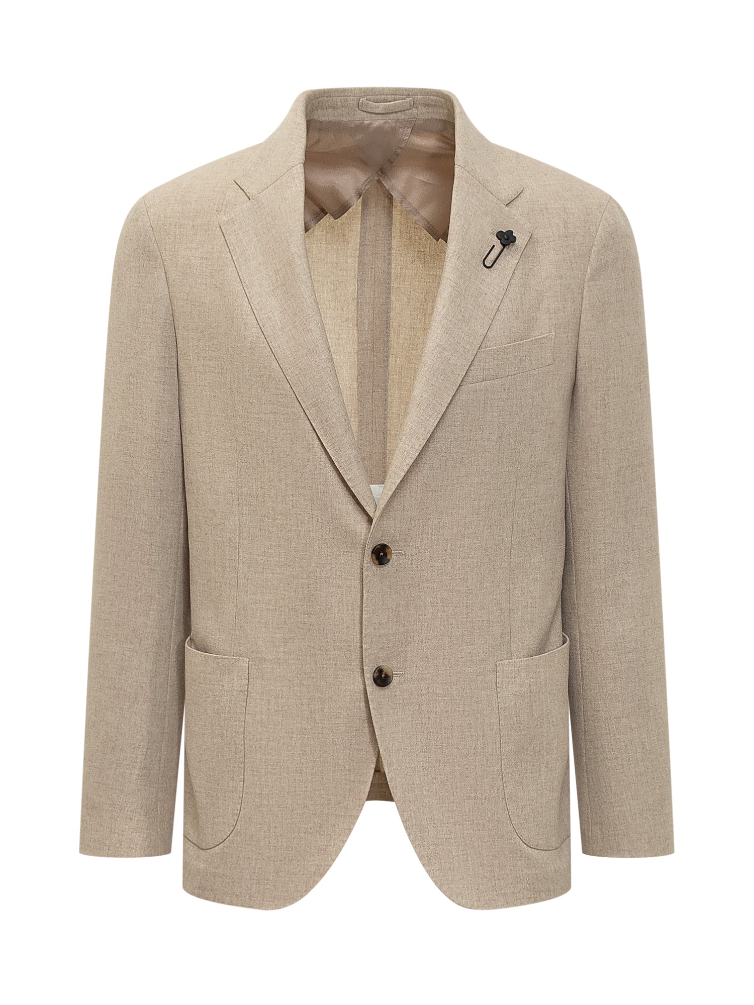 Giacca a maniche lunghe in lana vergine. Collo revers. Chiusura monopetto con bottoni. Polsini con bottoni. Due tasche sul davanti. Taschino sul petto. Spacchi sul retro.