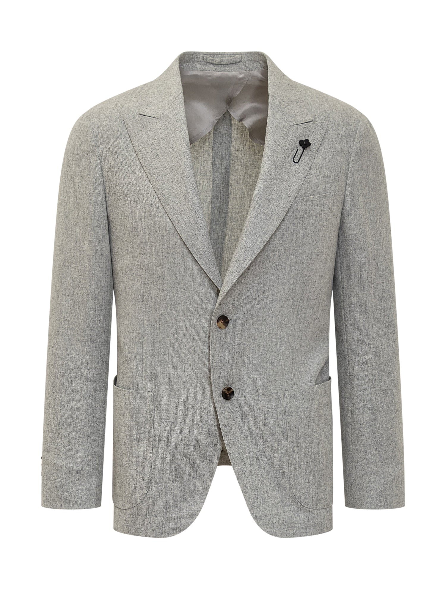 Giacca a maniche lunghe in lana vergine. Collo revers. Chiusura monopetto con bottoni. Polsini con bottoni. Due tasche sul davanti. Taschino sul petto. Spacchi sul retro.