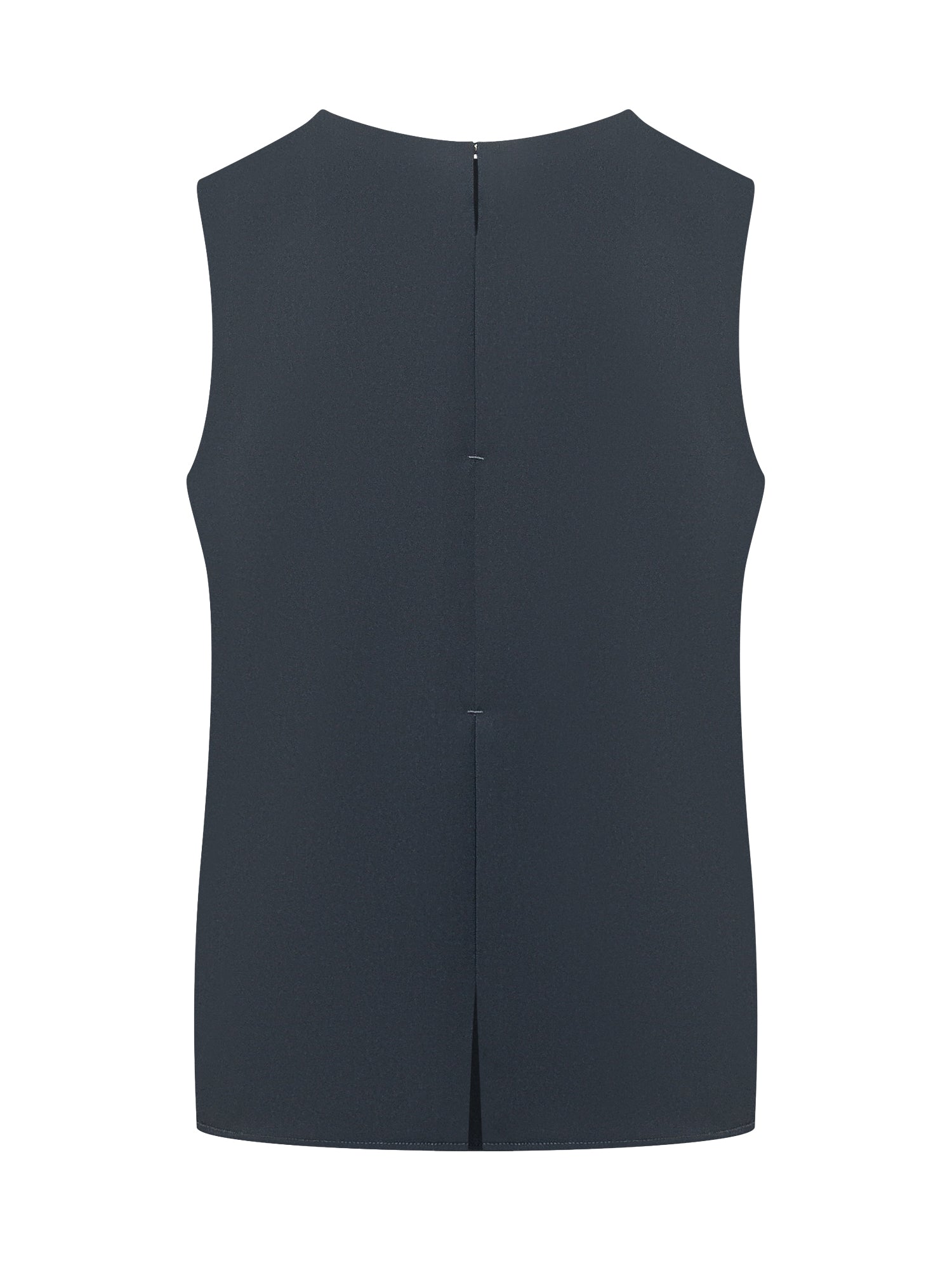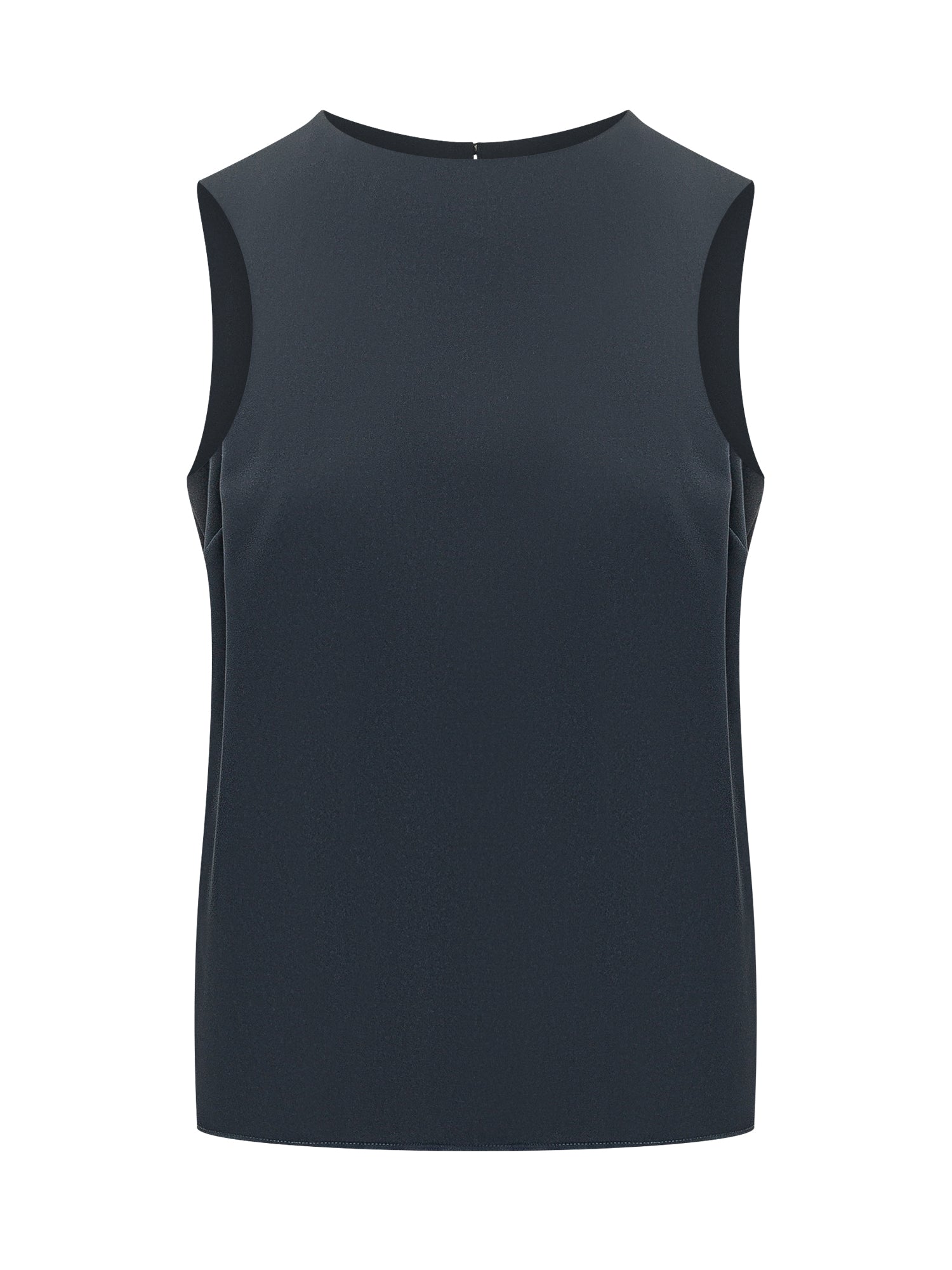 Blusa da donna smanicata, scollo barca, linea dritta e pulita, taglio morbido e leggero, chiusura posteriore discreta.