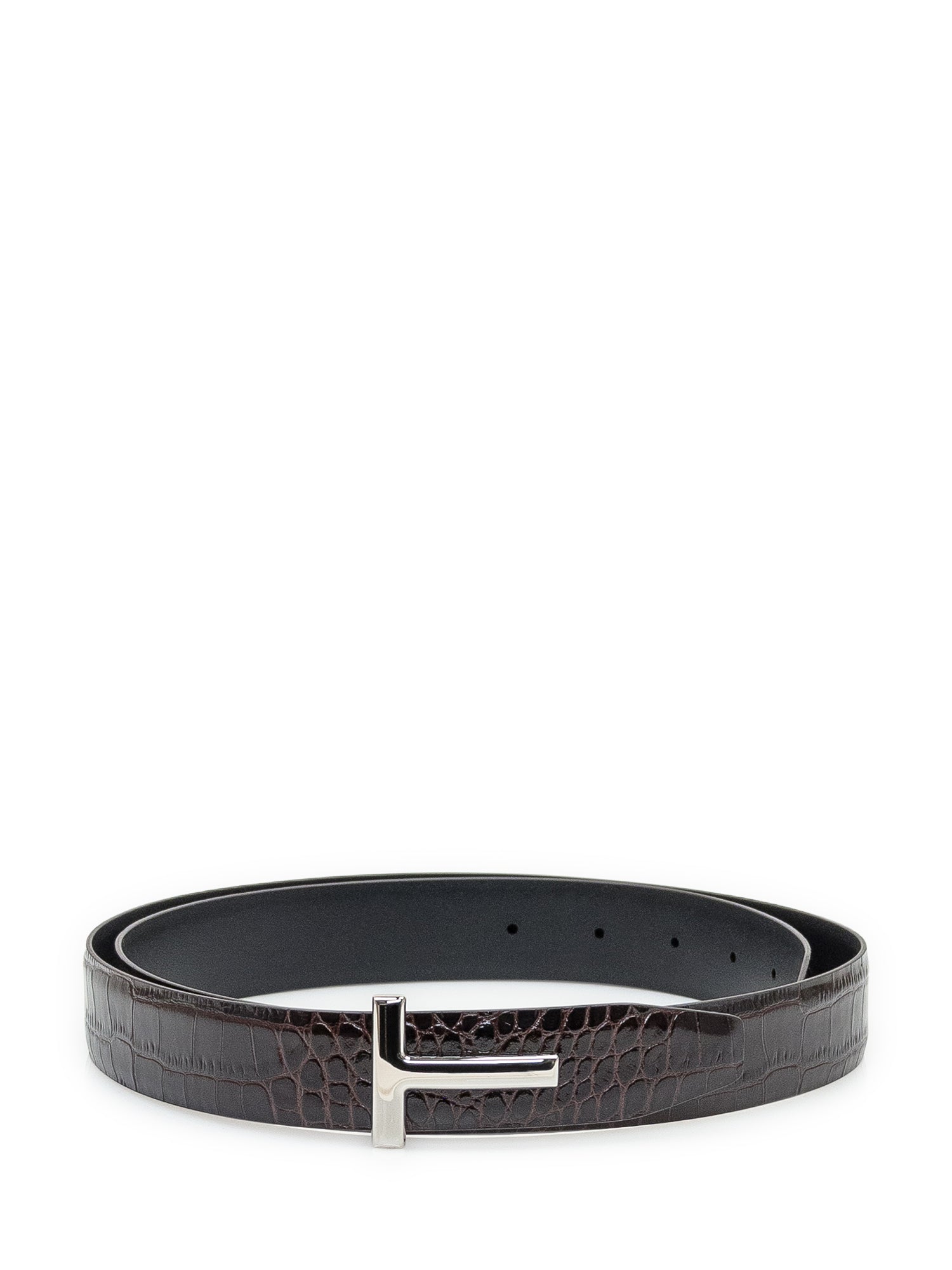 Tom Ford Cintura Marrone in Pelle con Fibbia Logo
