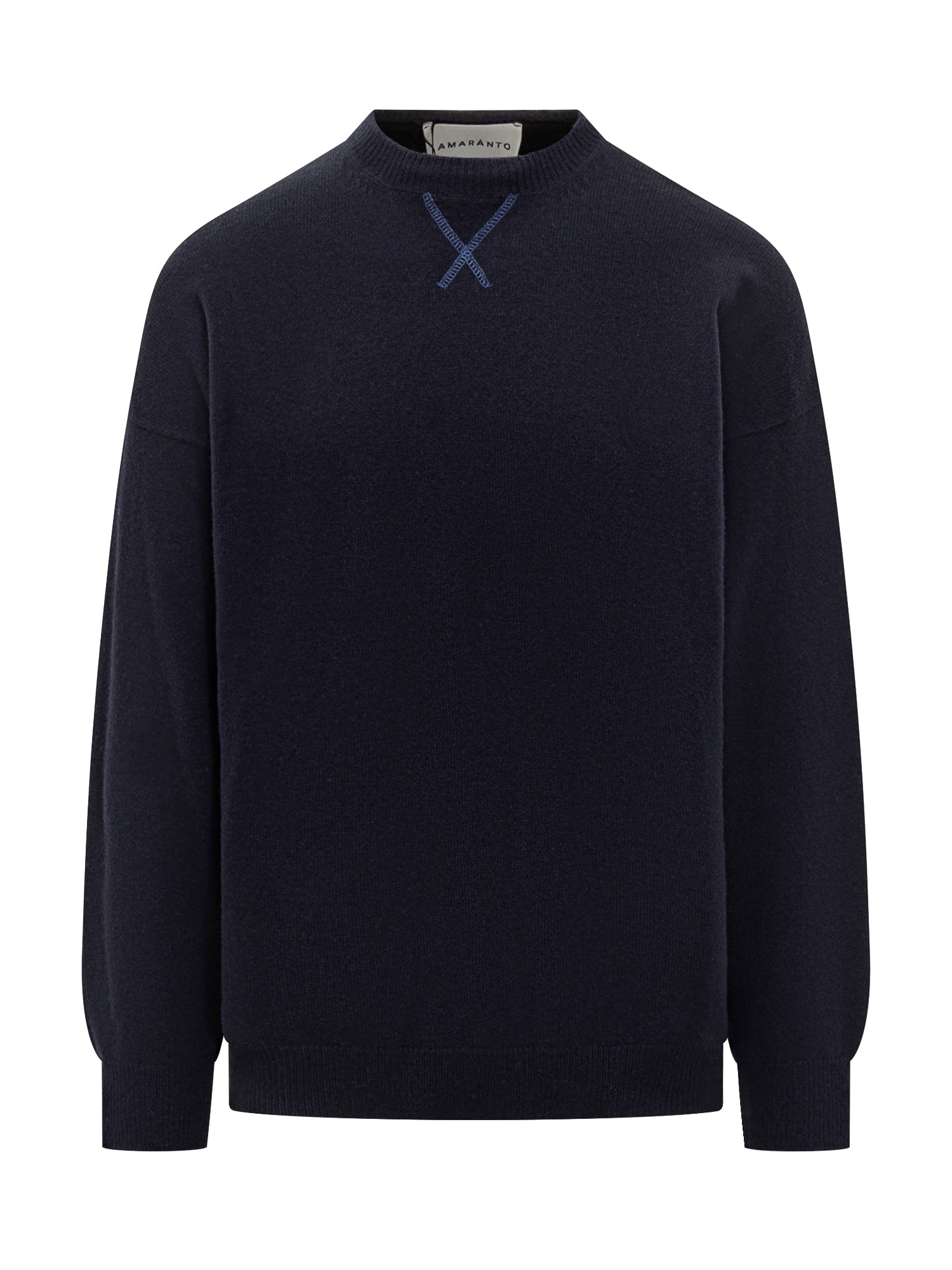 Amaranto Maglione Blu Girocollo con Dettaglio X