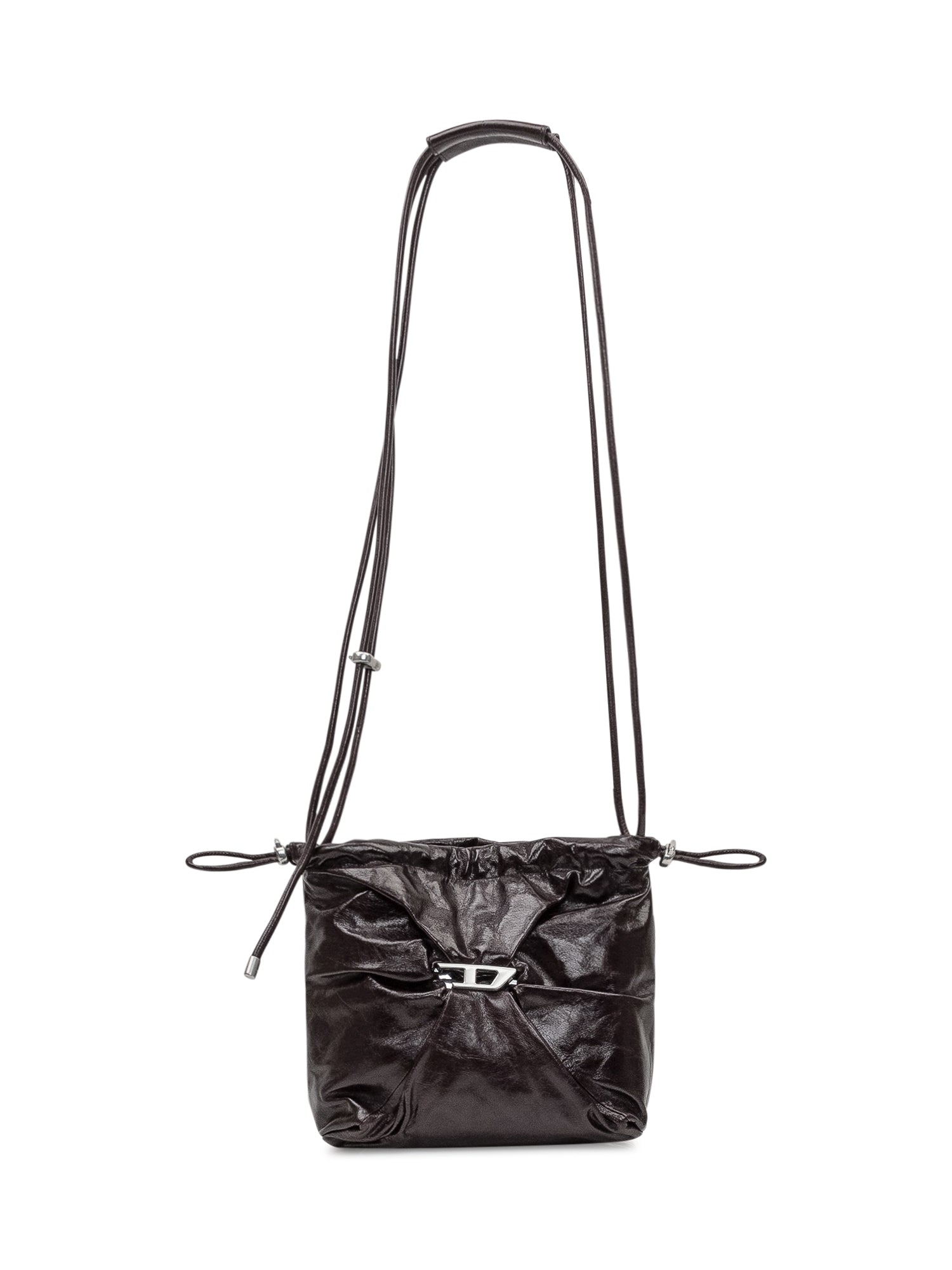 Borsa Diesel da donna in pelle effetto stropicciato con logo in metallo. Tracolla regolabile e rimovibile, chiusura con zip. Interno con tasca con zip e tasca piatta.
