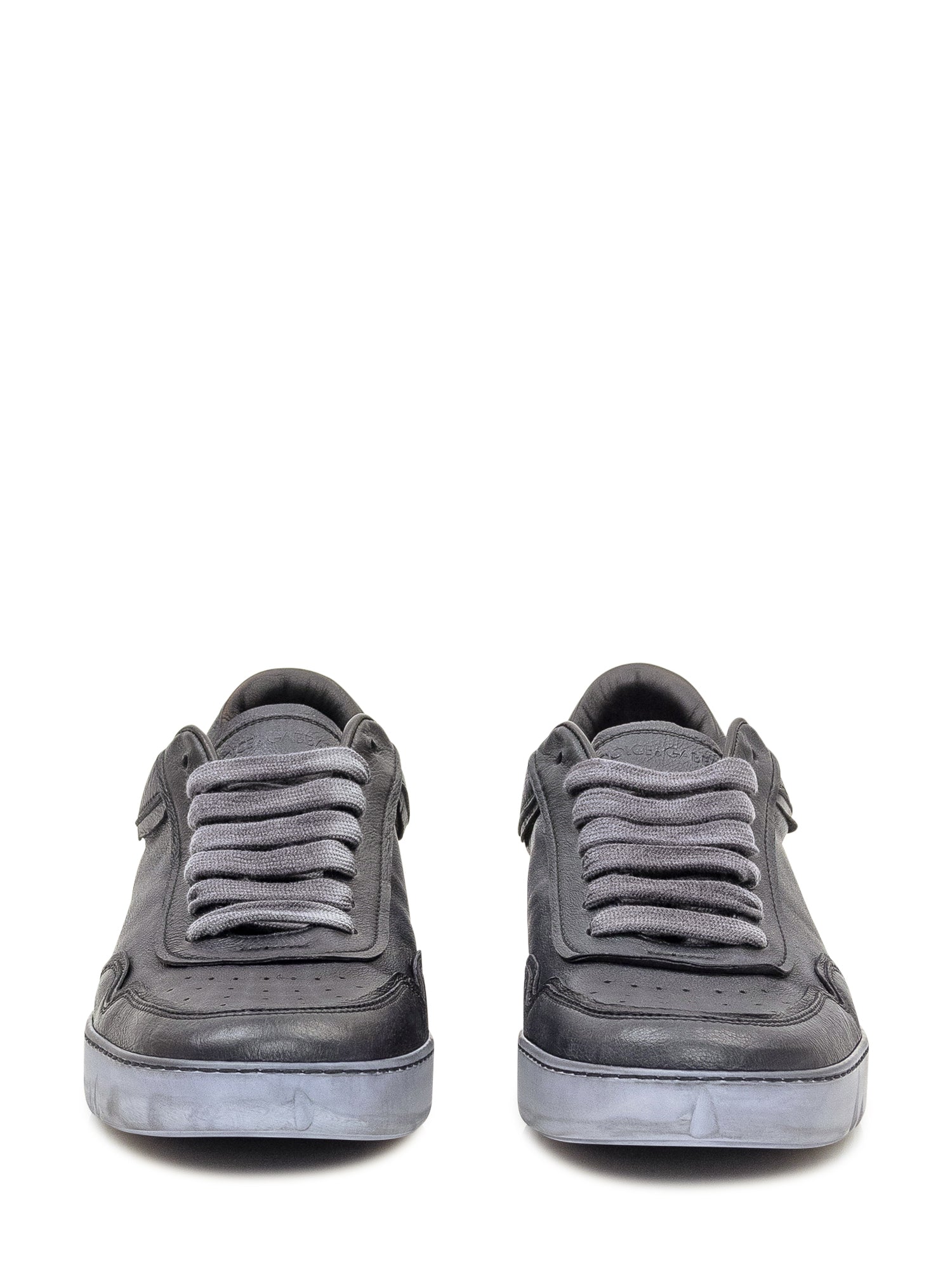 Sneakers Dolce & Gabbana in pelle nera con lacci tono su tono e suola bicolor grigia e nera con logo in rilievo.