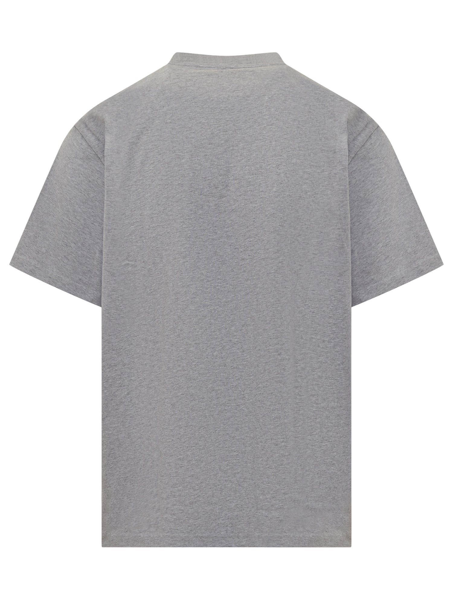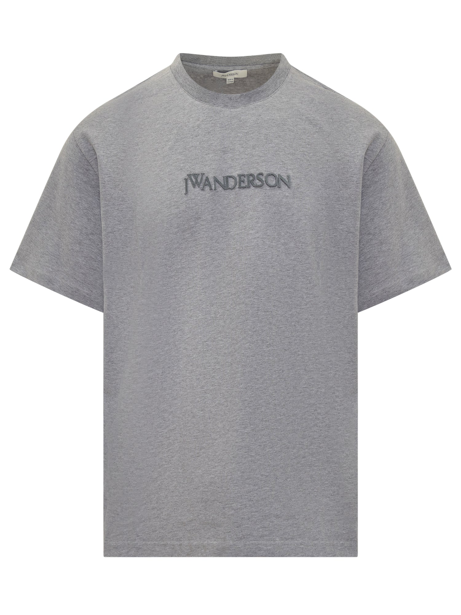 T-shirt grigia in cotone firmata JW Anderson con logo ricamato sul petto.