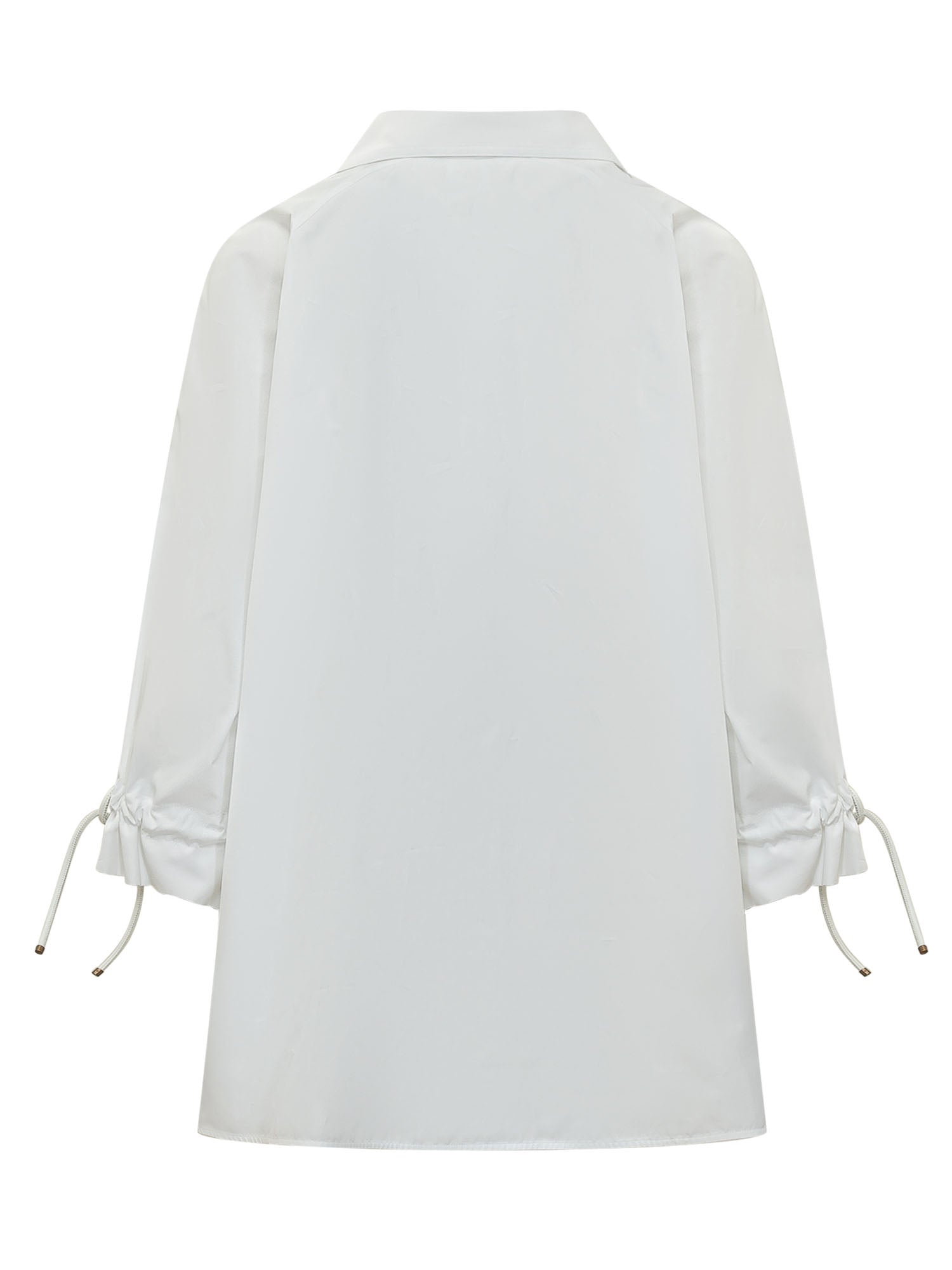 Casacca in popeline dal design essenziale con colletto classico e apertura frontale parziale. Modello con maniche a tre quarti arricciate e coulisse regolabile ai polsi per un effetto voluminoso. Linea morbida e contemporanea ideale per look eleganti o casual raffinati.