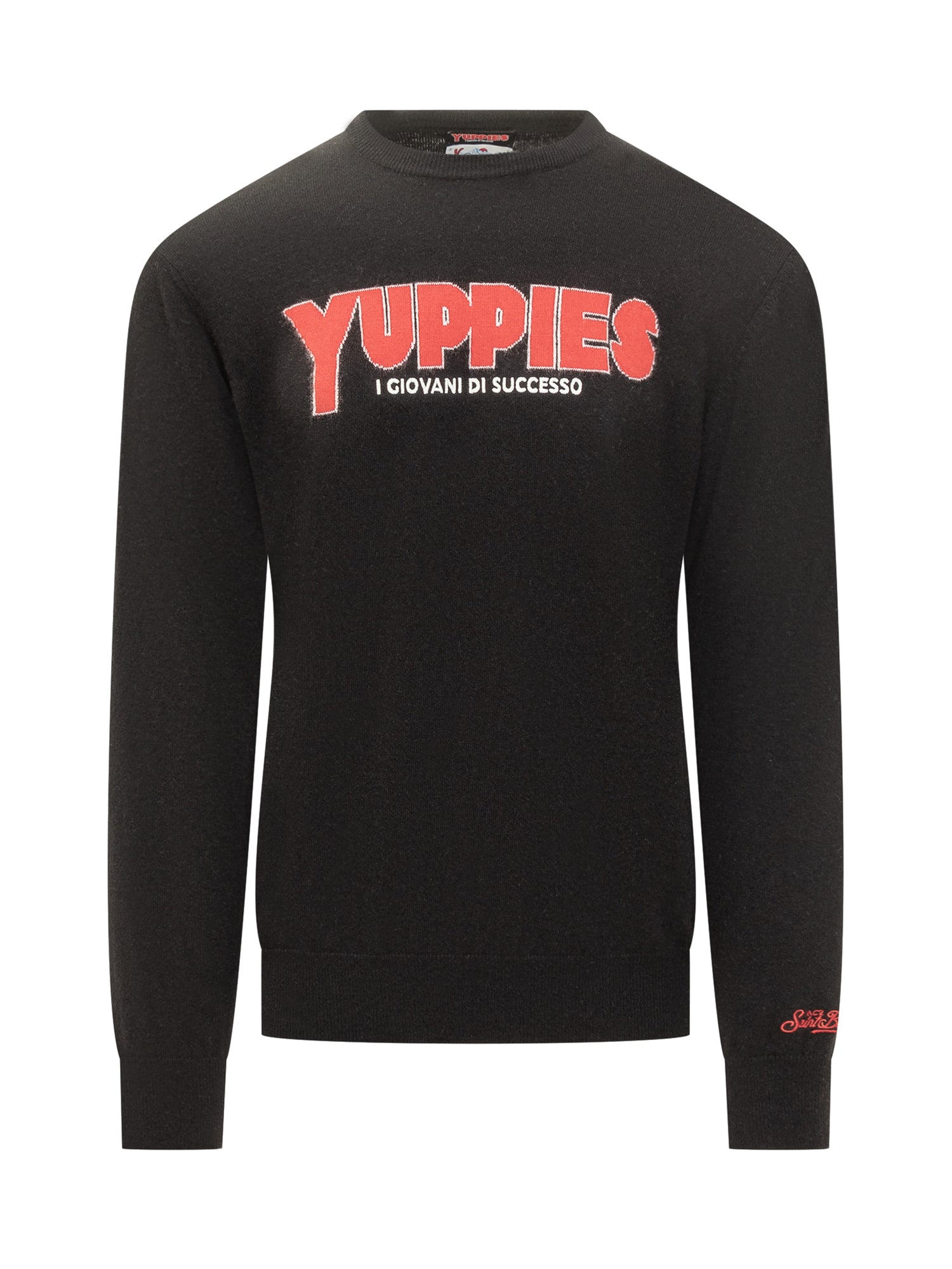 Maglione Saint Barth nero con scritta Yuppies I Giovani di Successo.