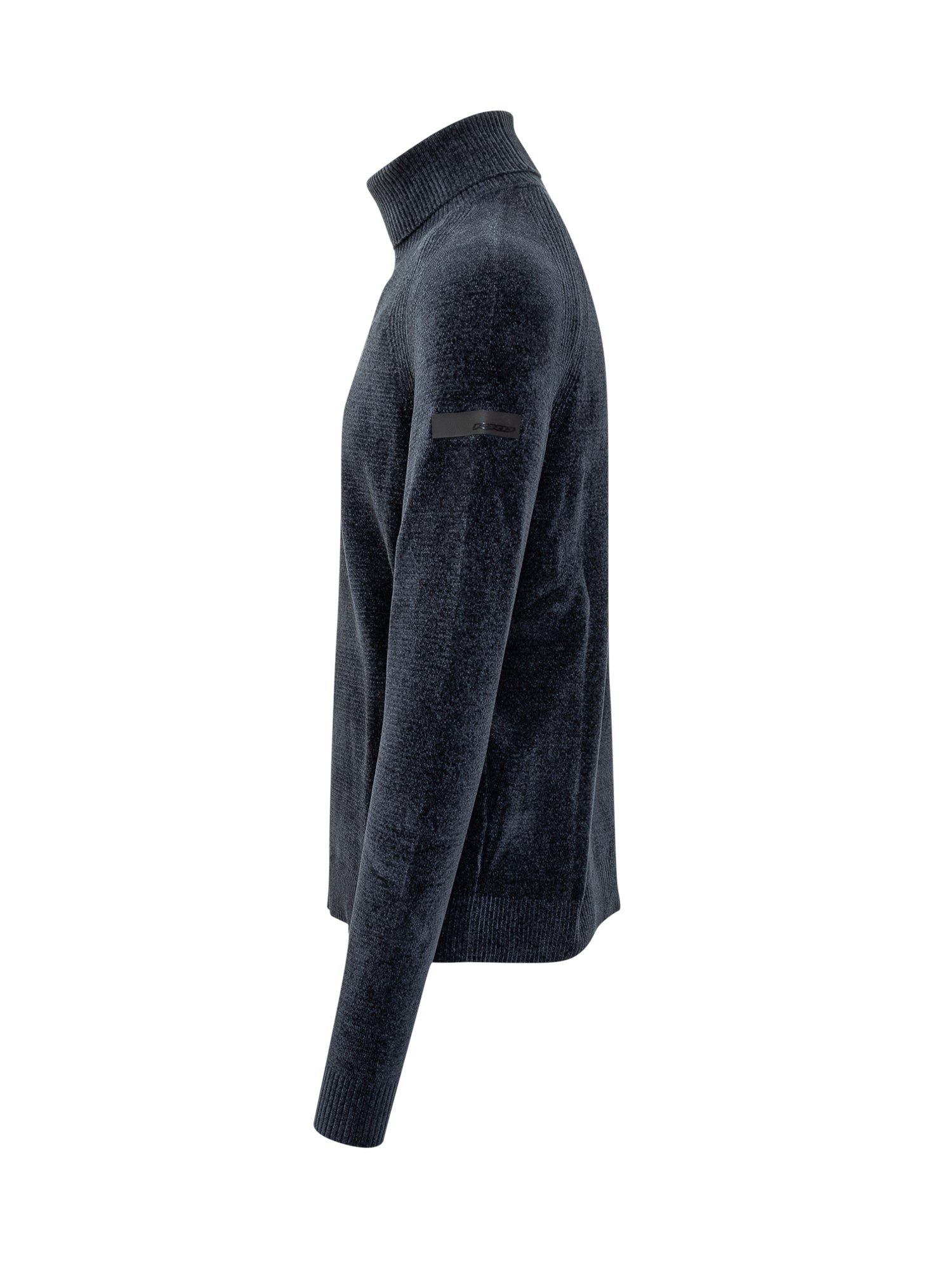Dolcevita blu RRD in morbida maglia con lavorazione a coste su collo, polsi e fondo.