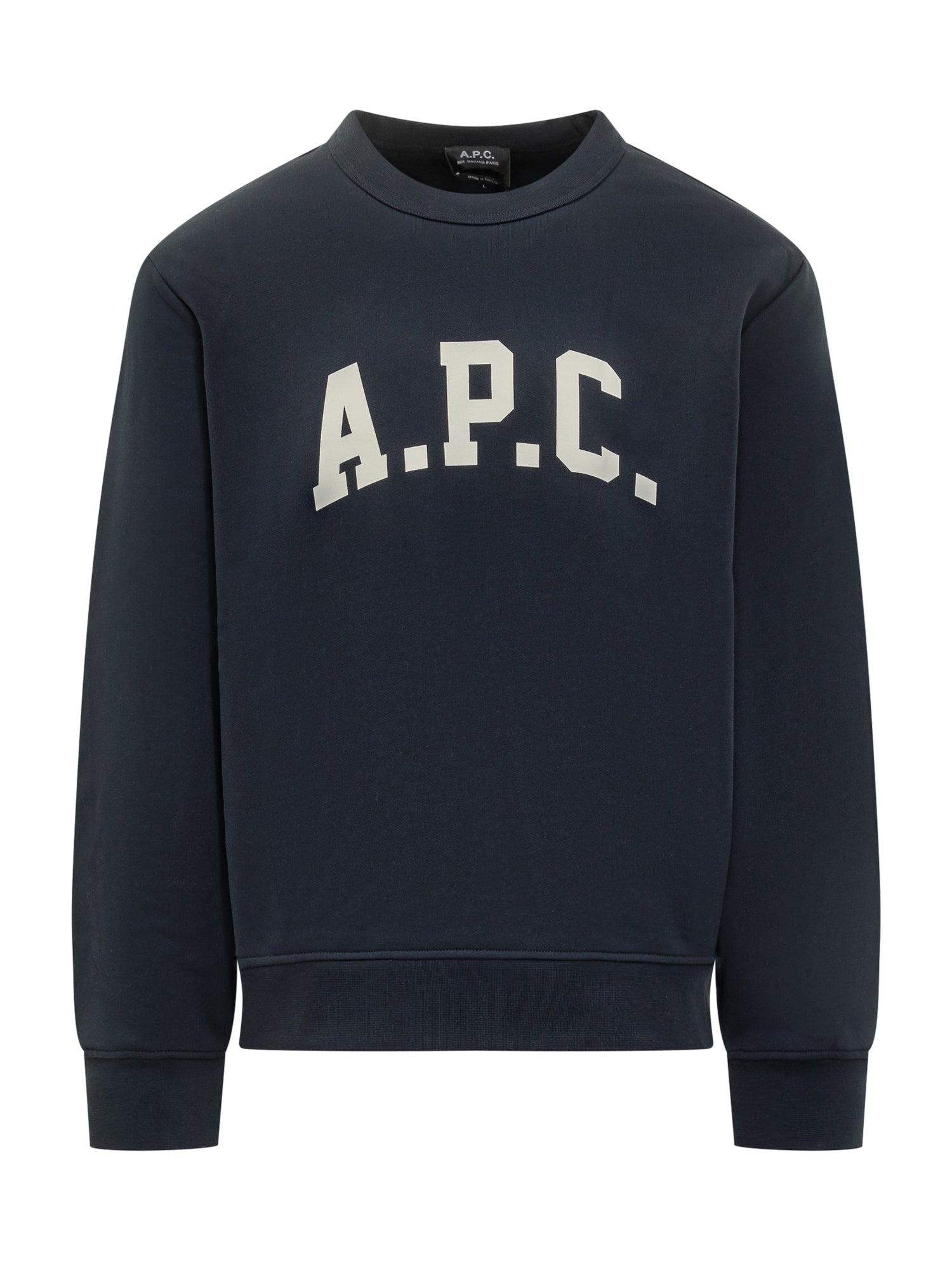 Felpa A.P.C. in blu navy con logo bianco a contrasto sul petto. Realizzata in cotone.