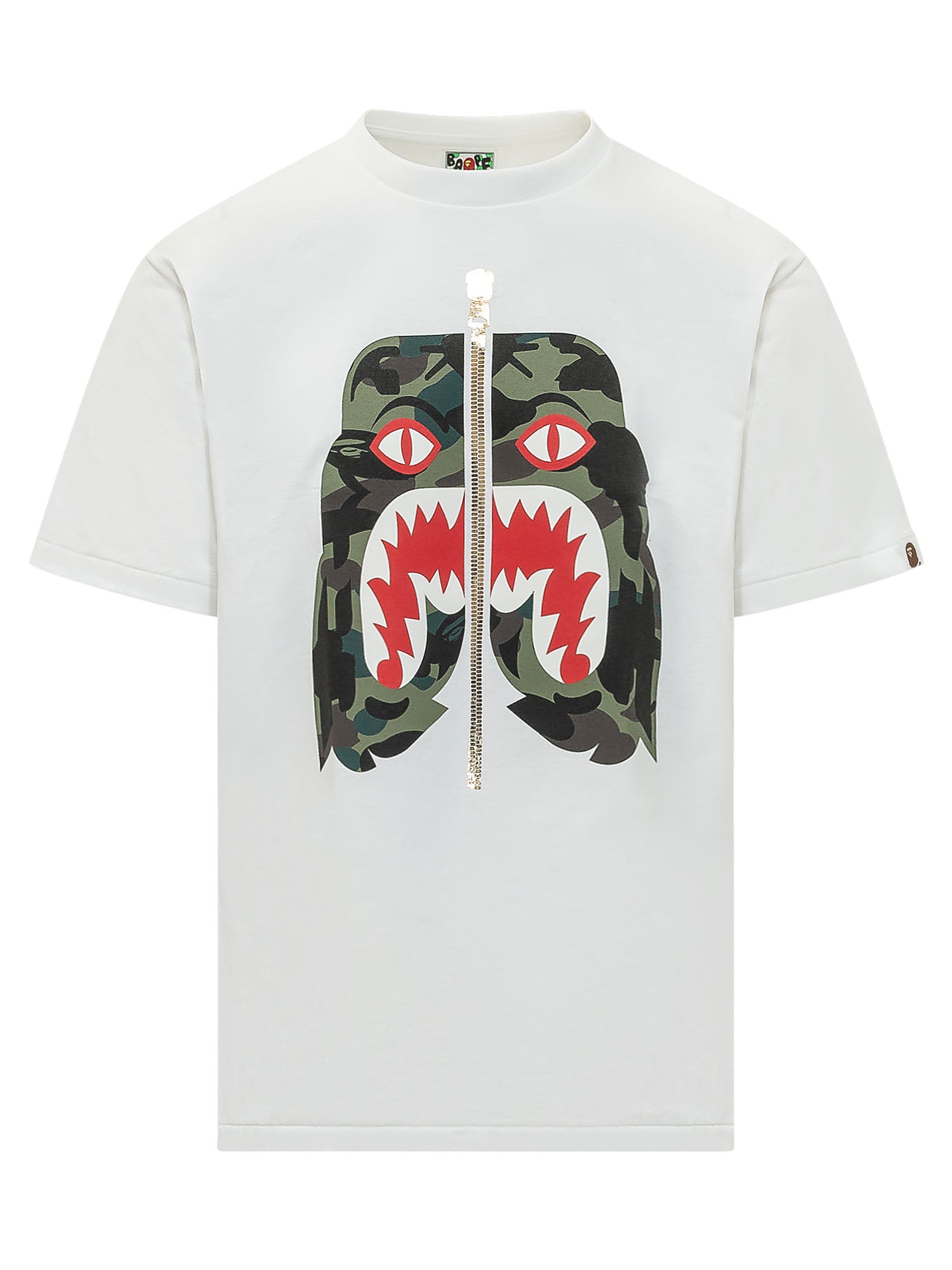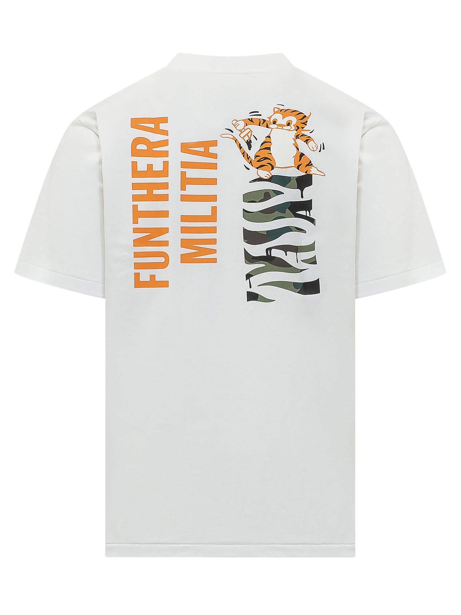 T-shirt con girocollo e maniche corte, caratterizzata da stampa grafica frontale con logo e motivo camo.