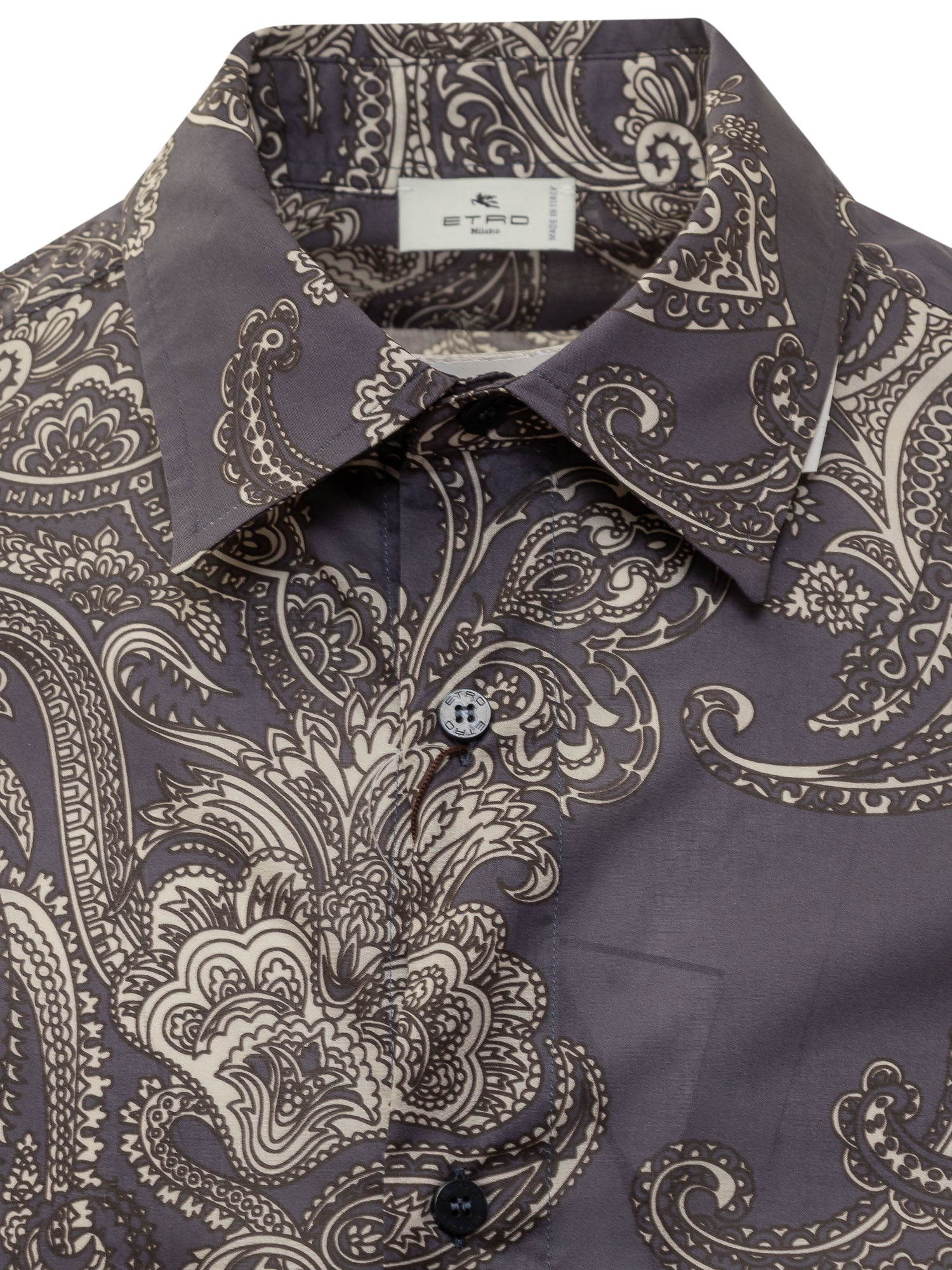Camicia a maniche lunghe. Collo classico. Chiusura con bottoni. Polsi con bottoni. Motivo Paisley.
