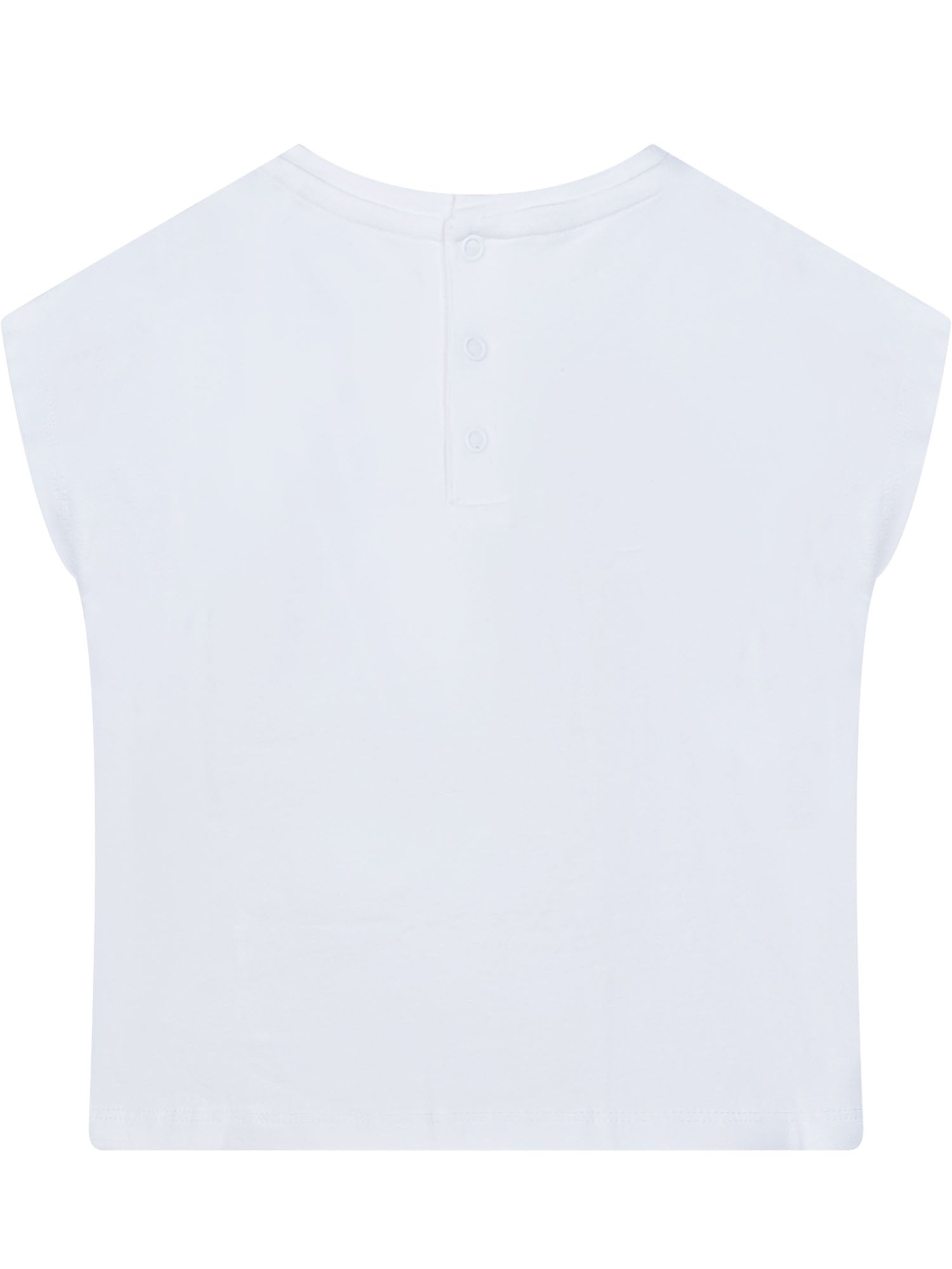 Maniche corte a pipistrello, girocollo, chiusura con bottone sul retro, stampa frontale con orso