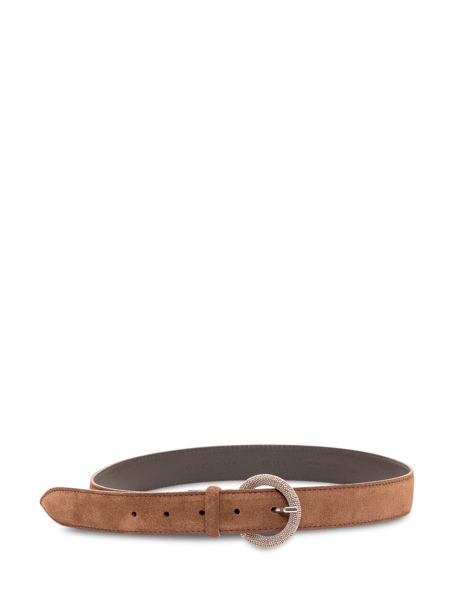 Cintura con fibbia rotonda, chiusura regolabile con fori, design lineare e dettagli curati