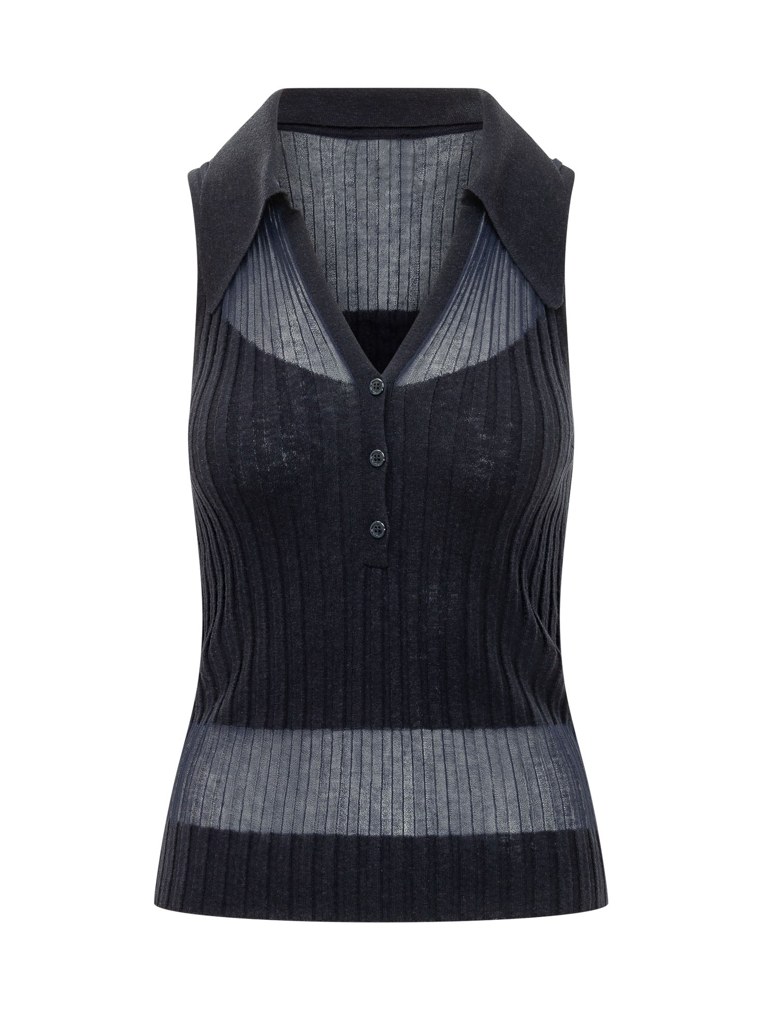 Canotta con spalline larghe e girocollo, lavorazione a coste e fondo ondulato