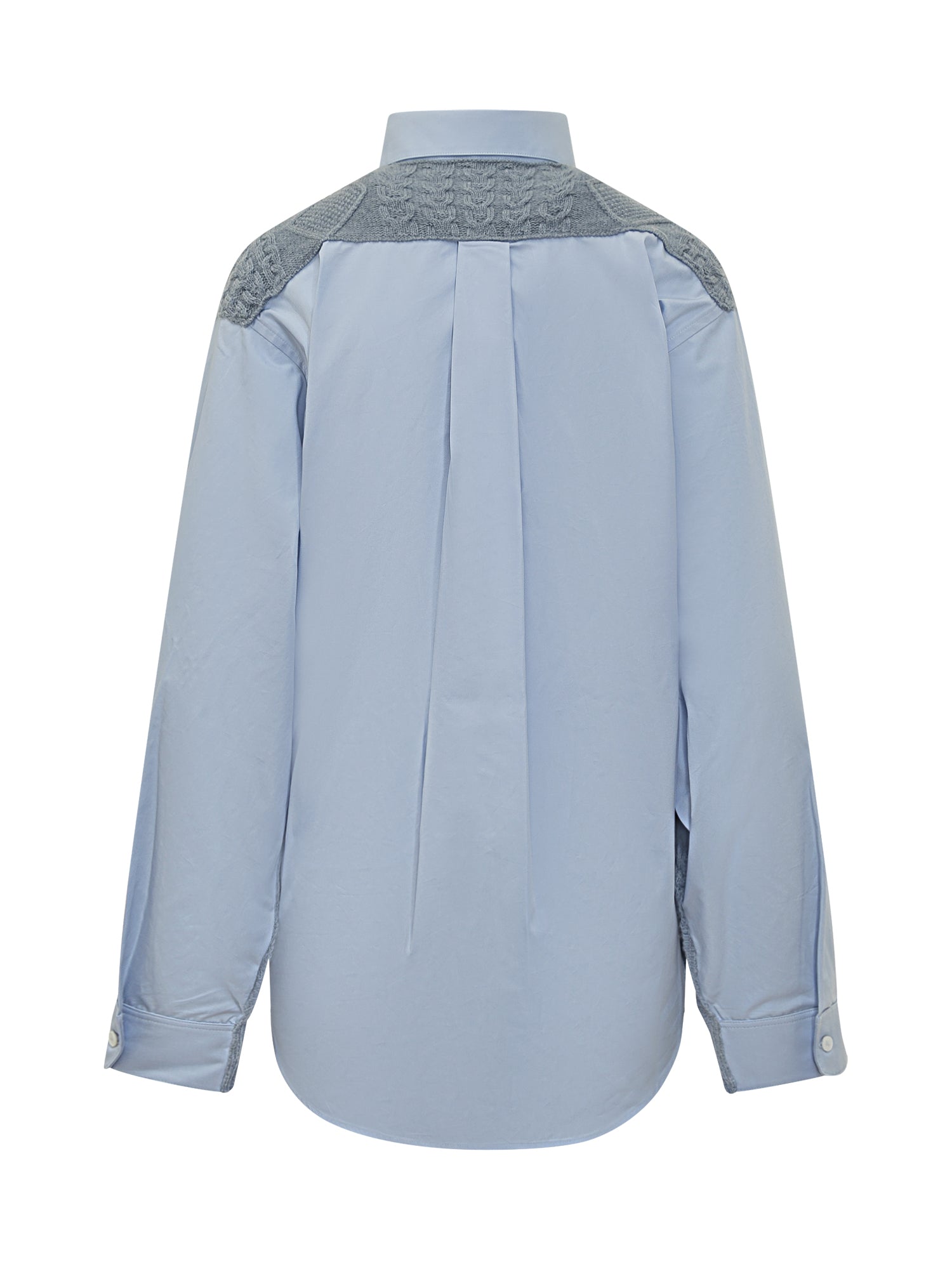Camicia dal design ibrido con corpo in maglia a treccia e maniche in popeline. Linee morbide, dettagli sartoriali e finitura testurizzata creano un look contemporaneo e versatile.