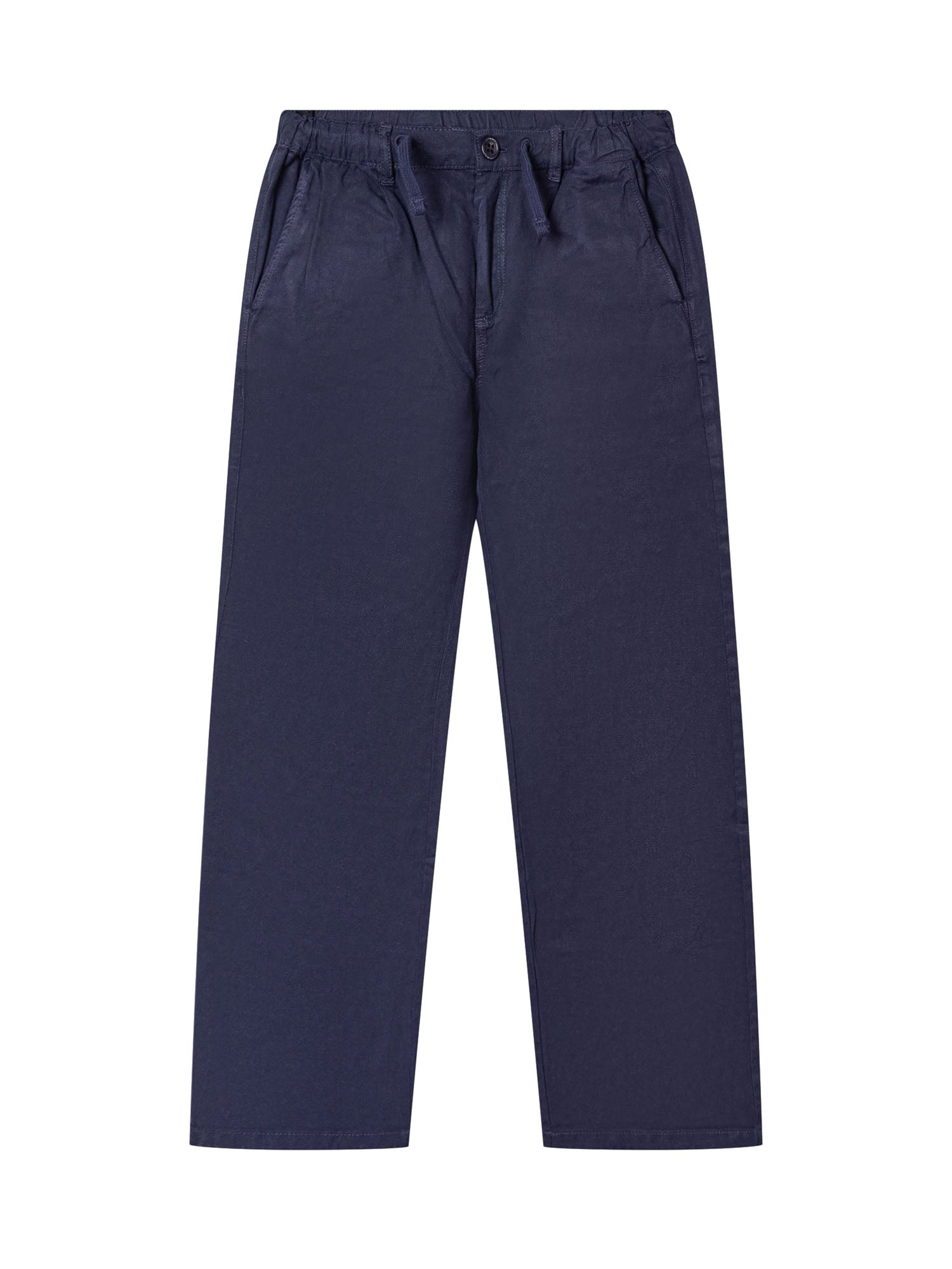 Pantaloni con vita elasticizzata e coulisse, chiusura frontale con bottone e tasche laterali