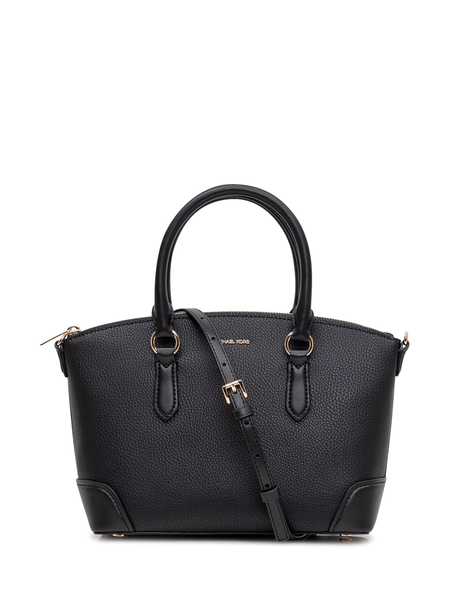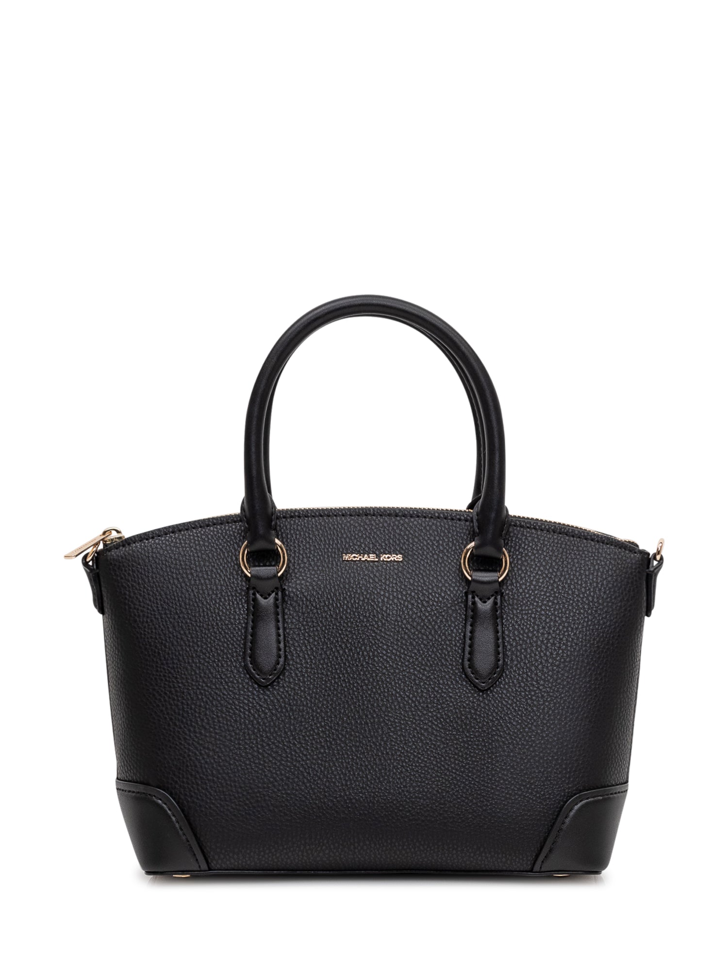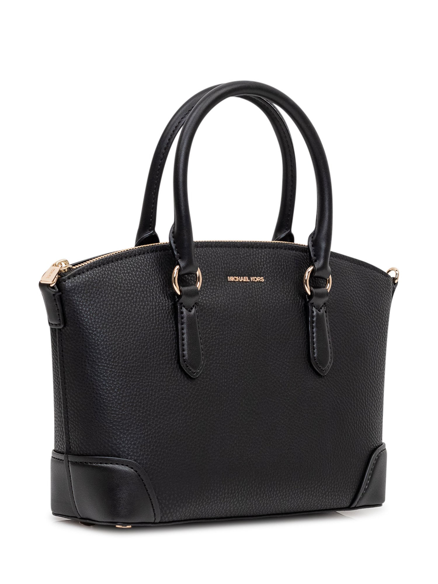 Borsa a mano rigida con silhouette arrotondata e manici strutturati. Chiusura superiore con zip, piedini metallici e tracolla regolabile rimovibile.Dimensioni: 32x21x8