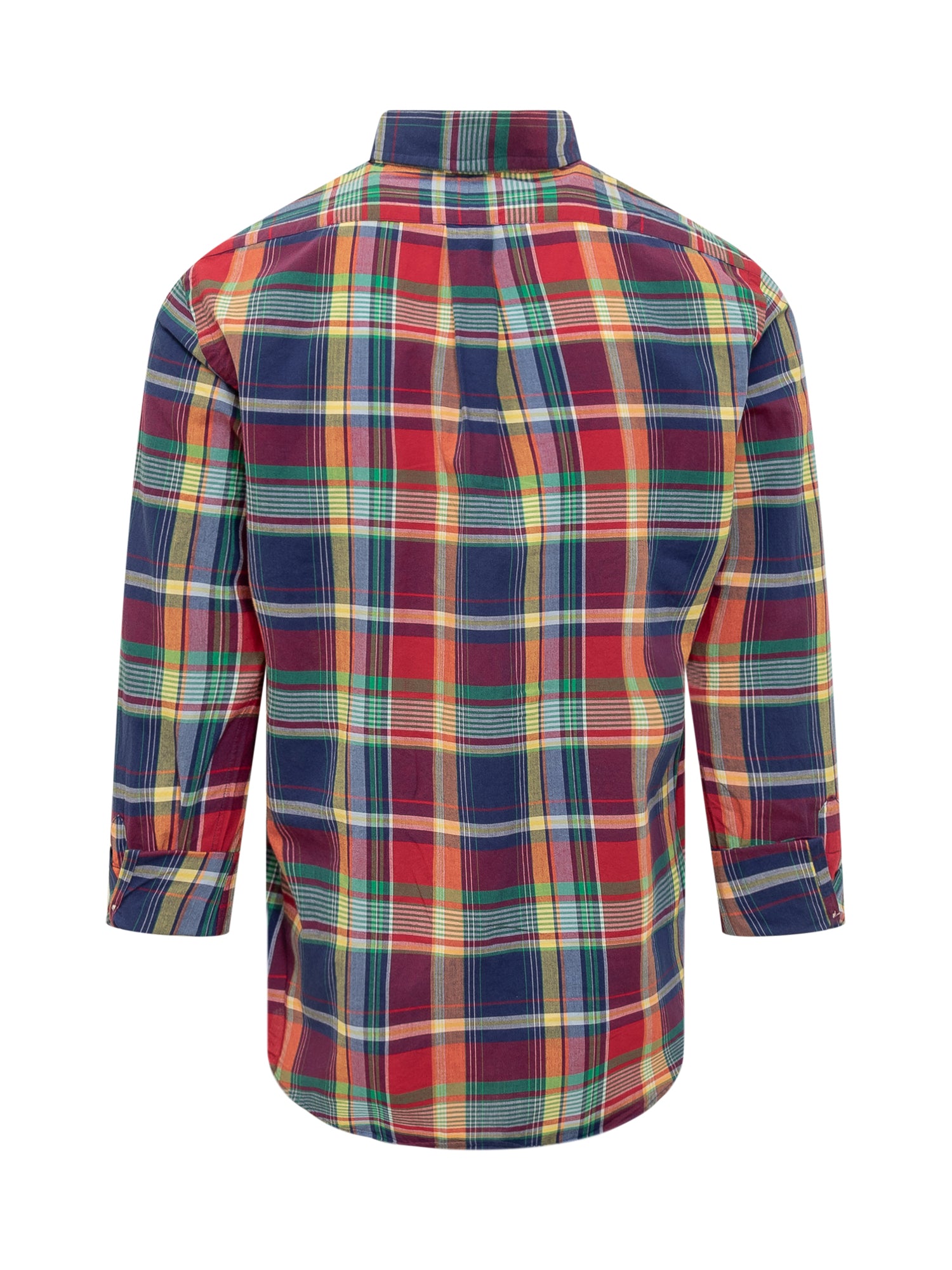 Camicia con maniche a 3/4 in cotone. Colletto button-down. Chiusura con bottoni. Logo ricamato sul davanti. Motivo check multicolare.