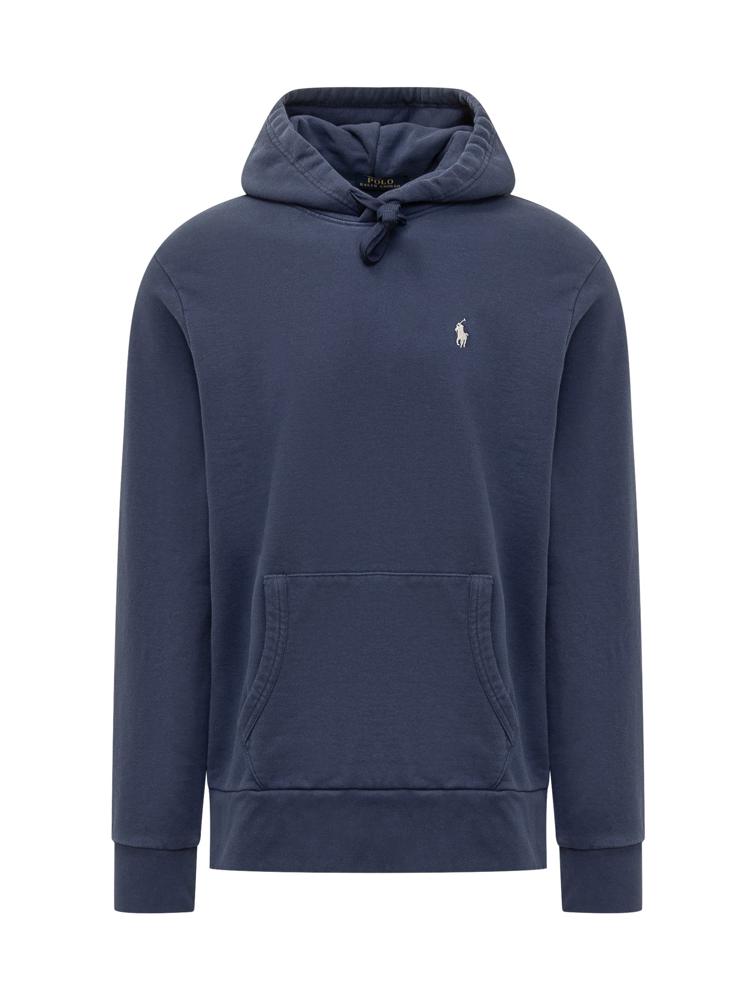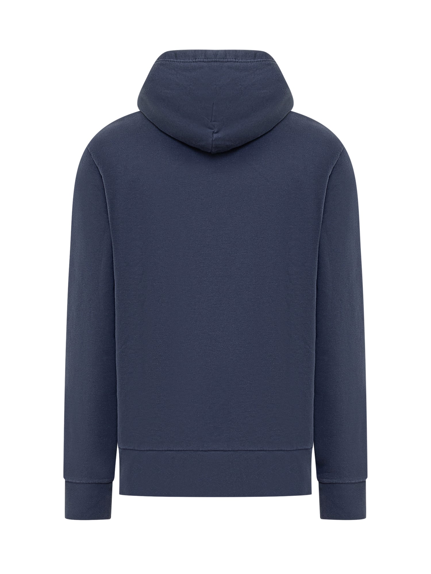 Felpa blu in cotone. Cappuccio con coulisse. Maxi tasca sul davanti. Logo ricamato.