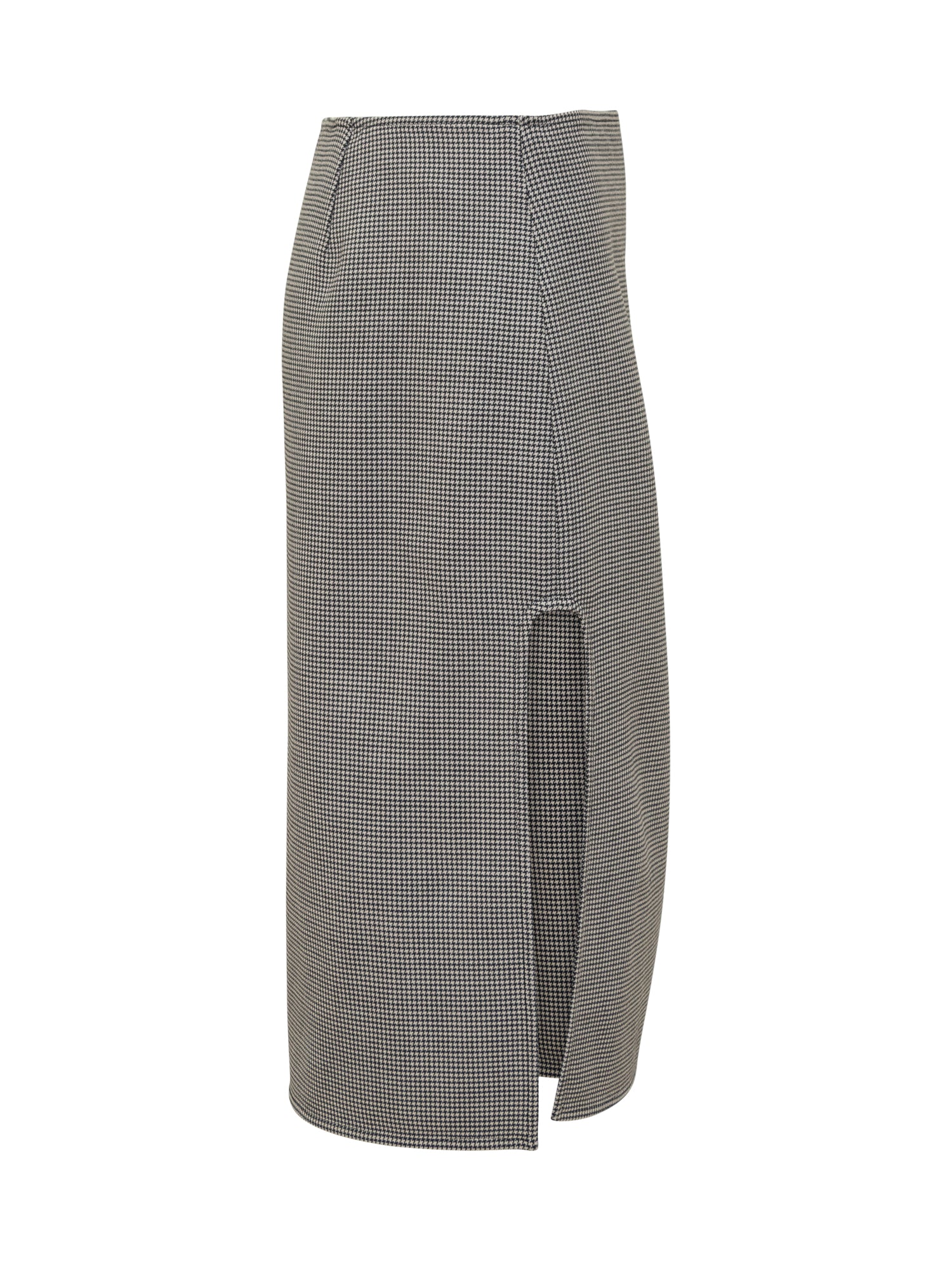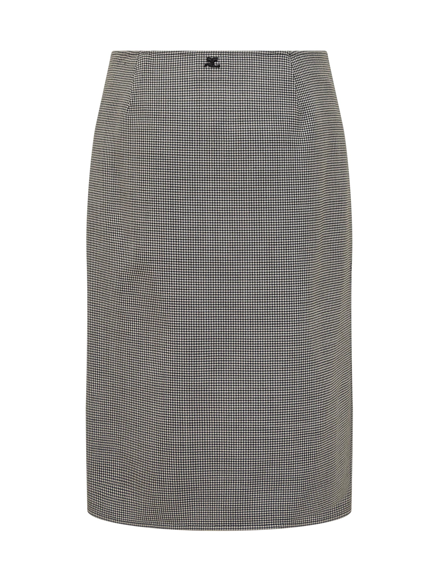 Gonna lunga. Chiusura con bottoni. Spacco sul lato. Logo sul retro. Tessuto jacquard pied de poule nero e bianco.