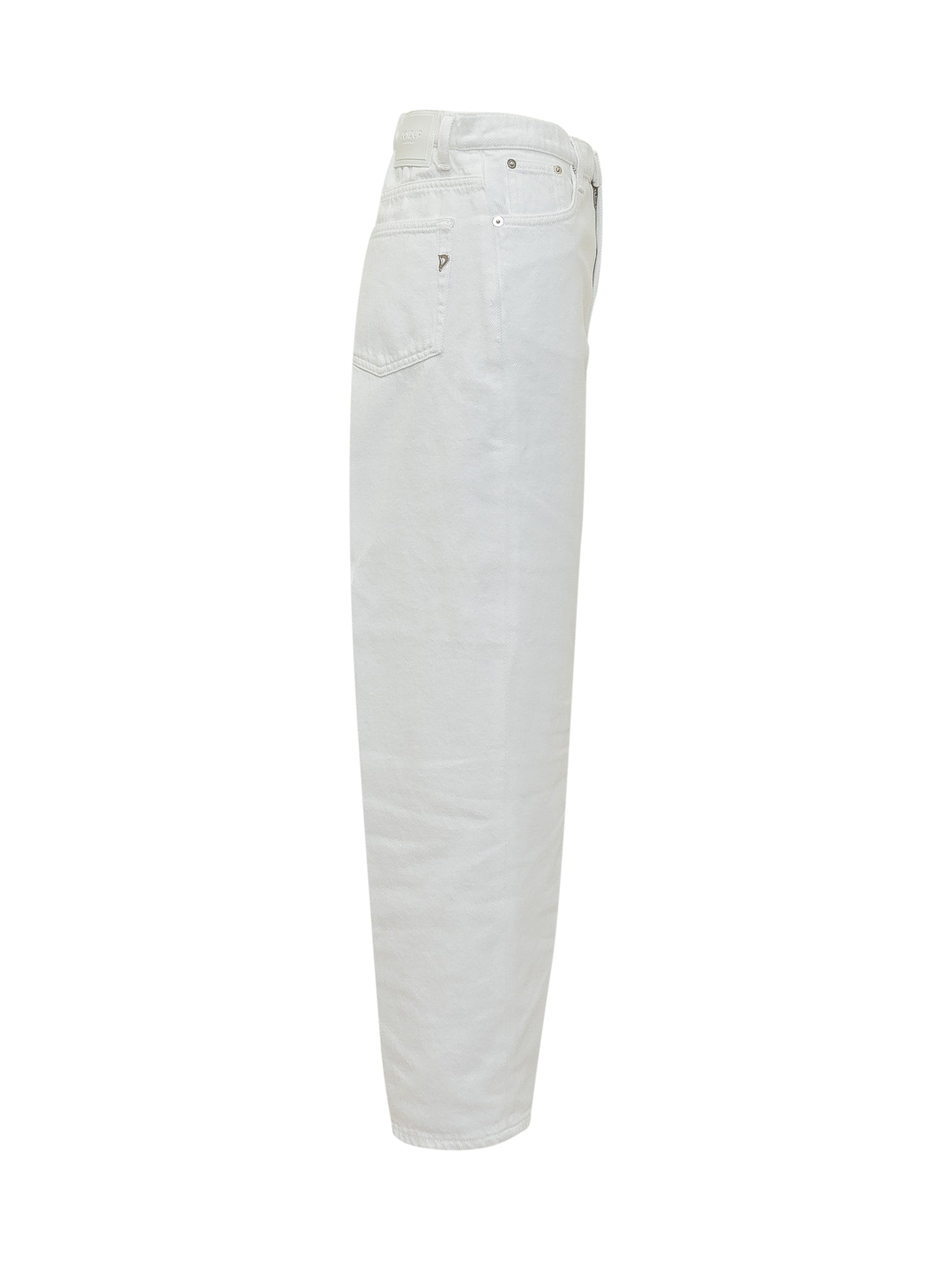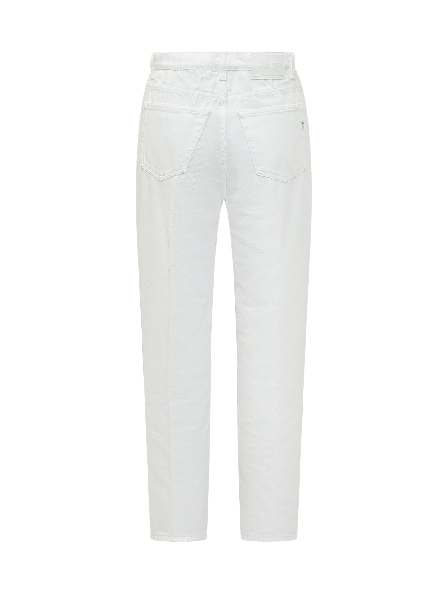 Jeans in denim a 5 tasche con vita alta e gamba dritta. Chiusura con bottone e zip, passanti in vita e cuciture resistenti.
