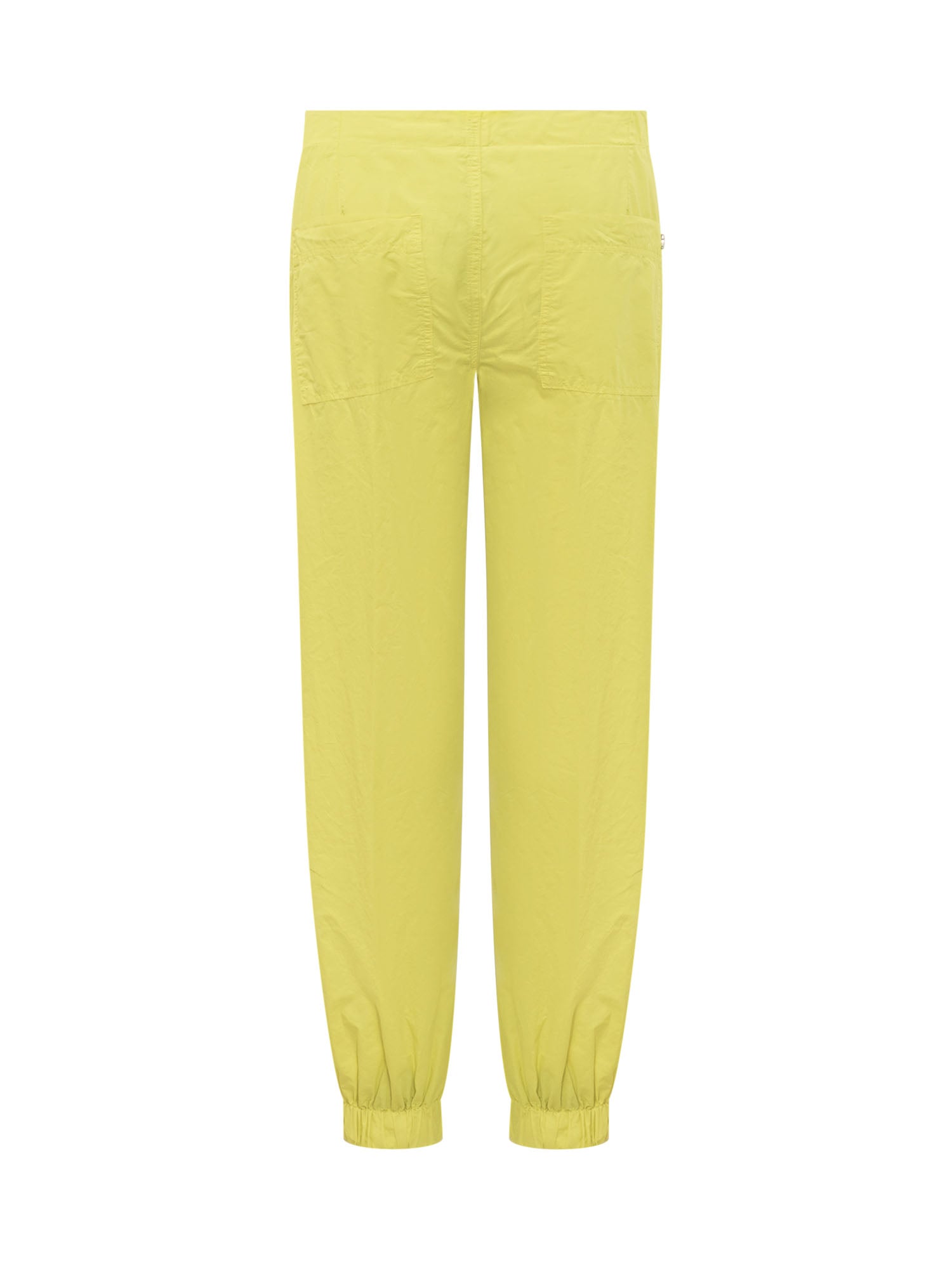 Pantalone lungo ballon. Chiusura con bottone e zip. Fondo elasticizzato. Quattro tasche.