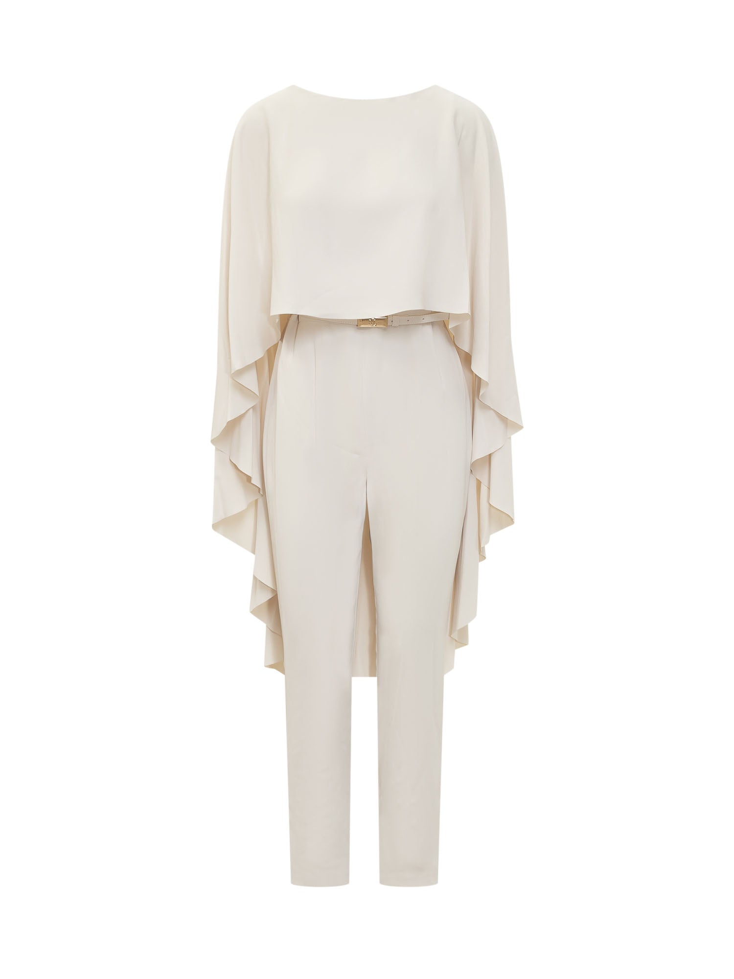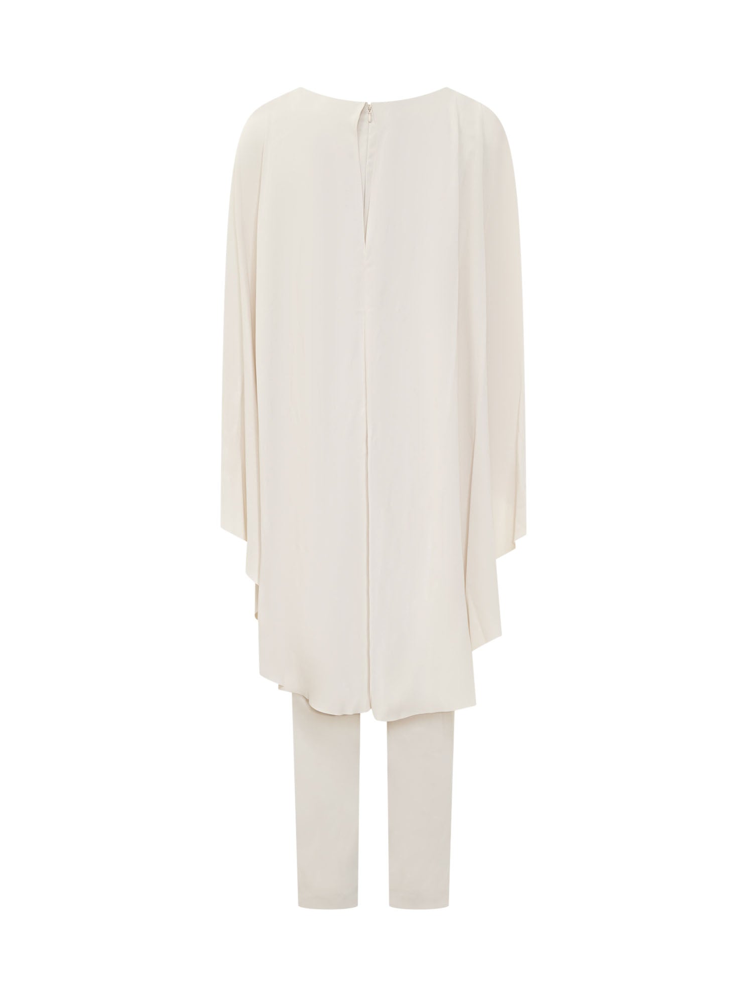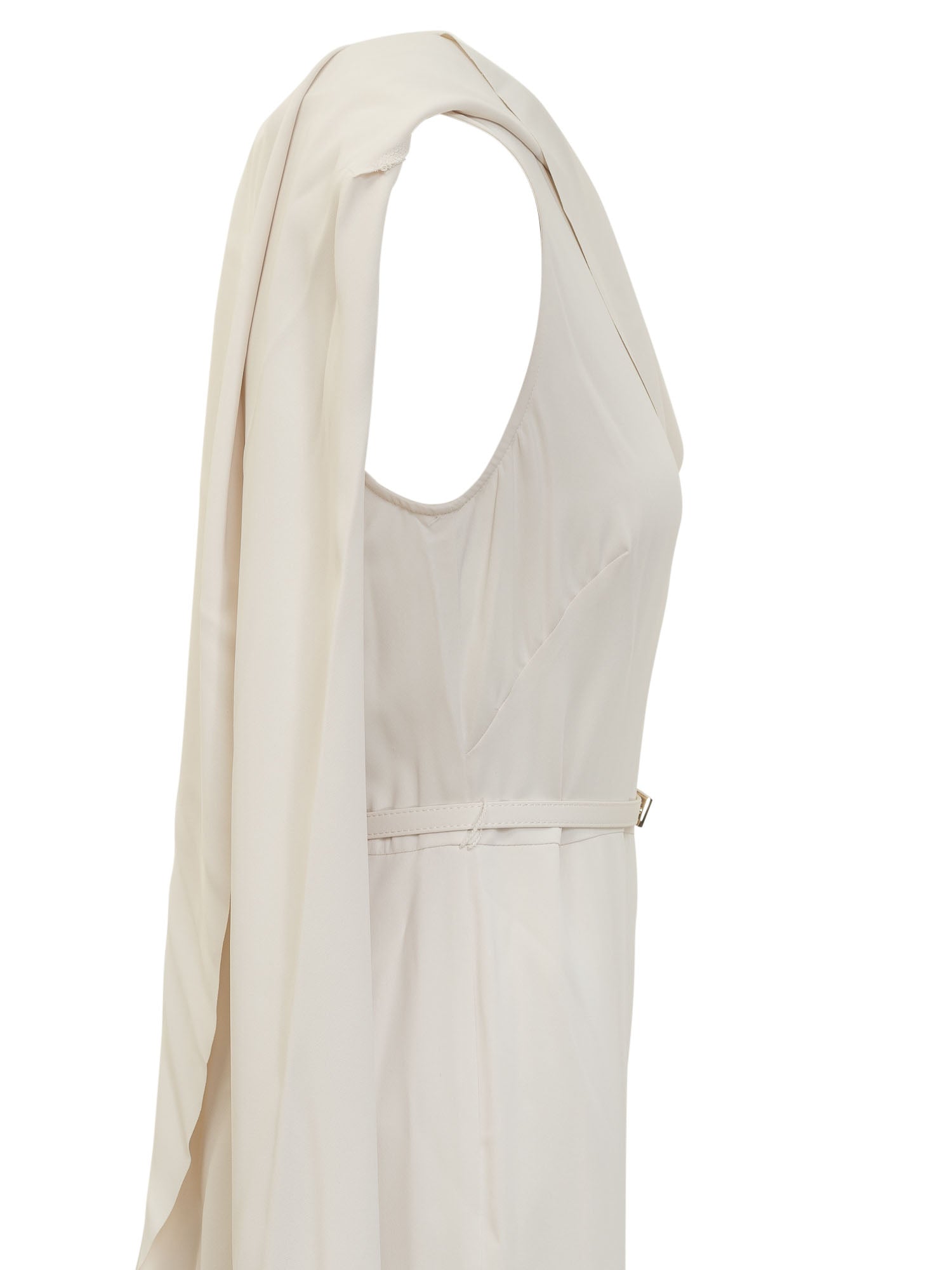 Tuta intera lunga. Girocollo. Senza maniche. Chiusura con zip sul retro. Cintura in vita.