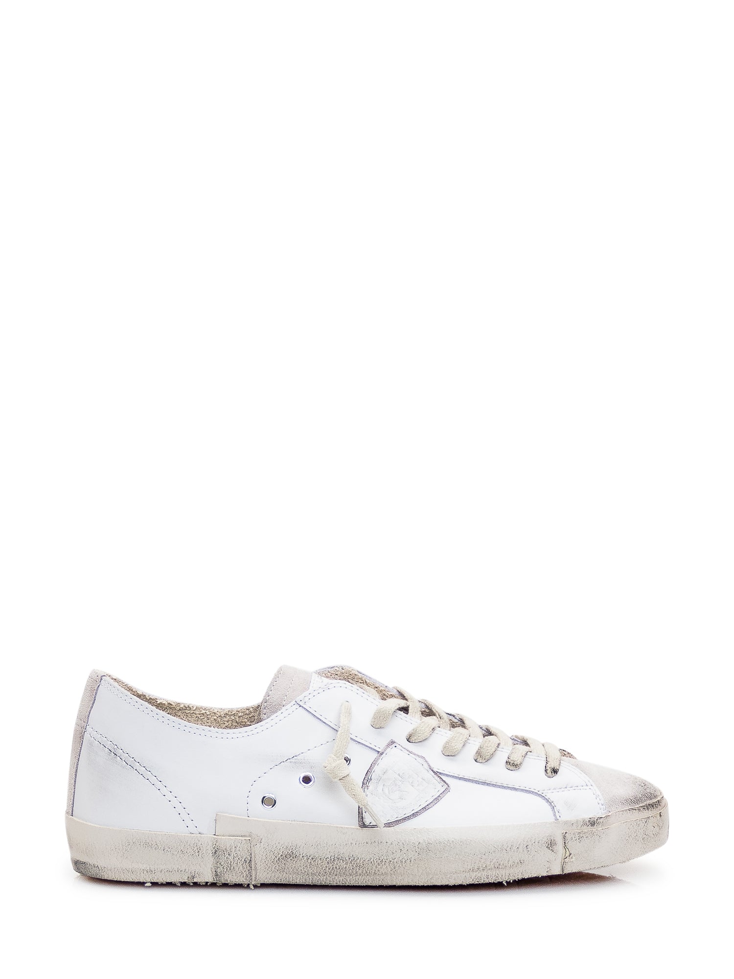 Sneaker bianca in pelle con effetto usurato. Inserti in pelle scamosciata. Chiusura con lacci. Patch Logo sulla linguetta. Patch logo scudetto embossed sul lato.