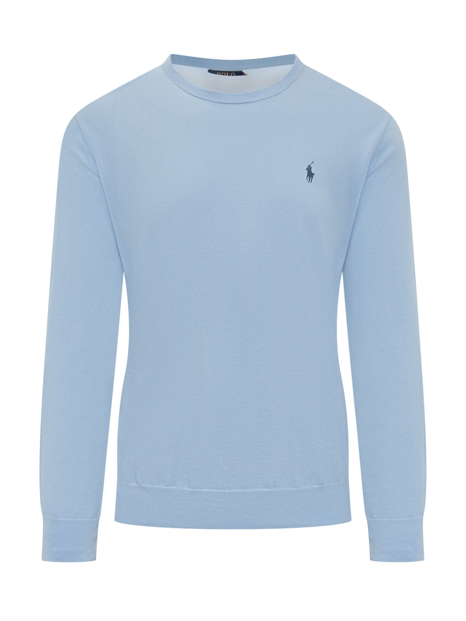 Maglia a maniche lunghe con girocollo, finiture a costine su polsi e fondo, logo sul petto