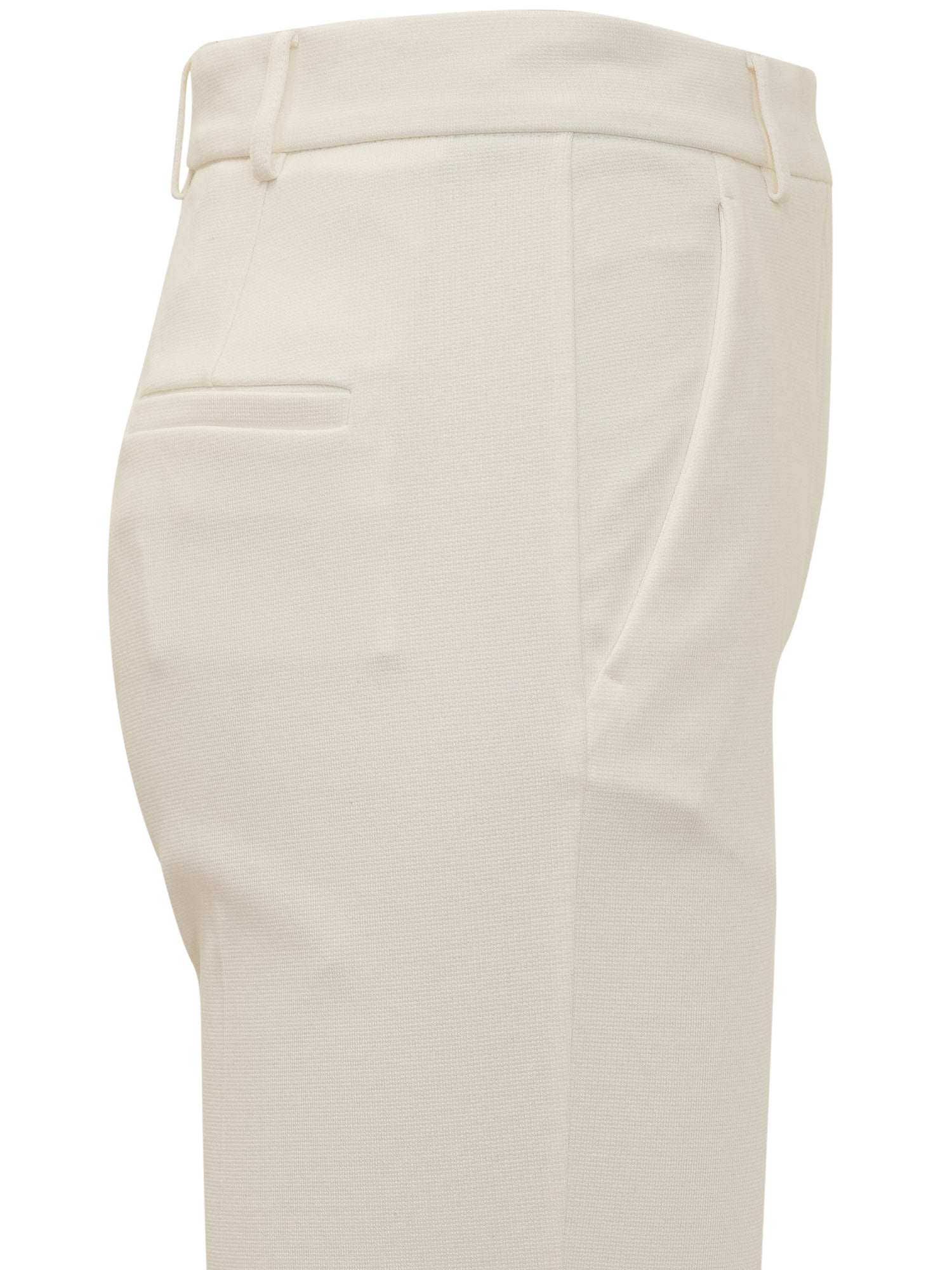 Pantaloni lunghi slim fit. Chiusura con zip e gancino. Passanti per cintura. Quattro tasche.
